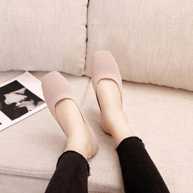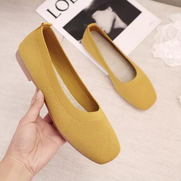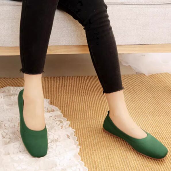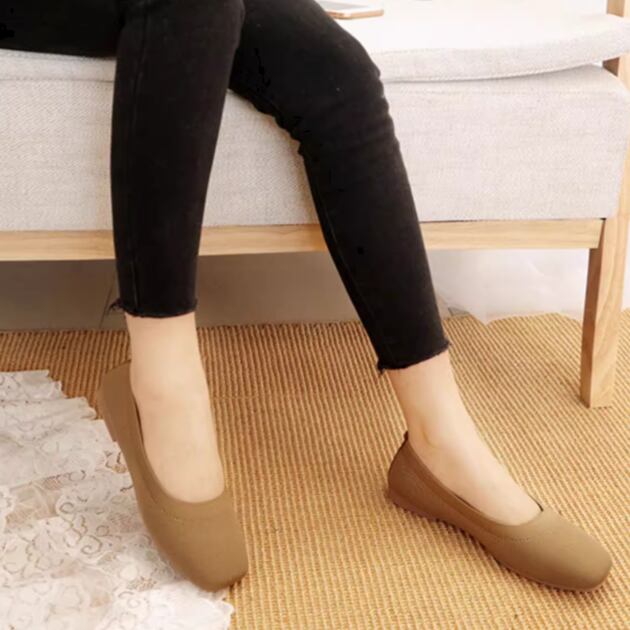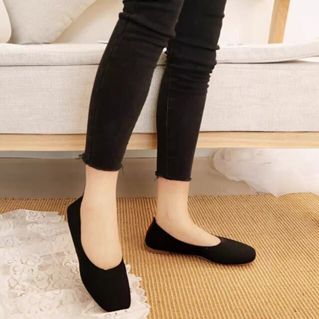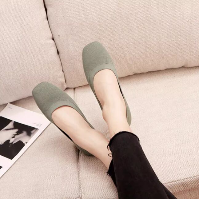 スクエアトゥがお洒落なデザインで、通気性も高いフラットなパンプスです。