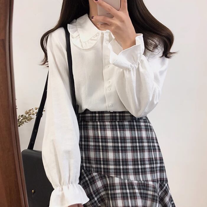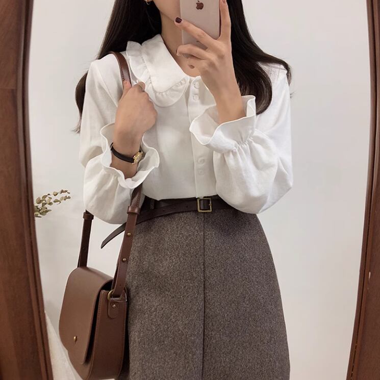 レディース トップス シャツ ブラウス 前開き 長袖 襟付き 丸襟 フェミニン ボタン 薄手 かわいい 大人可愛い きれいめ シンプル カジュアル 上品 おしゃれ かっこいい レトロ アジアン こなれ感 ラフ ルーズ 個性的 エレガント モダン 主役級 存在感 とろみ感 抜け感 ラブリー キュート ロリータ 都会的 ロマンティック ナチュラル 無地 春 秋 デート お出かけ リゾート 旅行 レストラン 女子会 休日 ショッピング お花見 カフェ コーデ 普段使い モテ 清楚 定番 S M L ホワイト