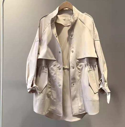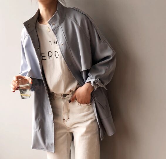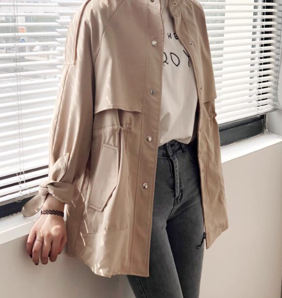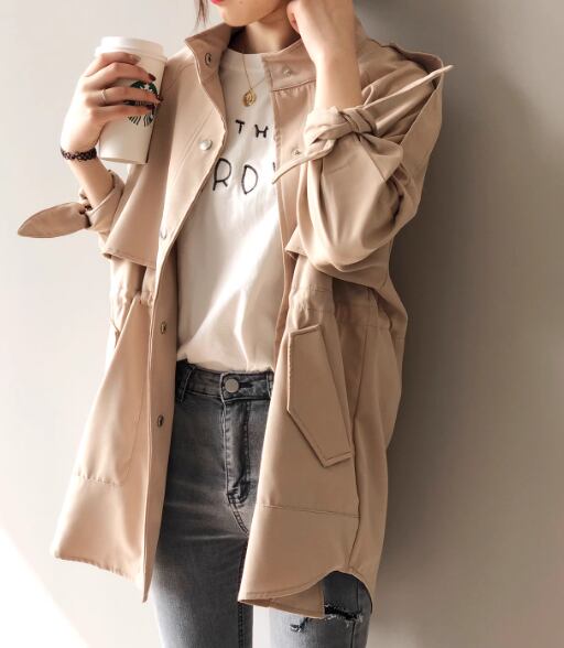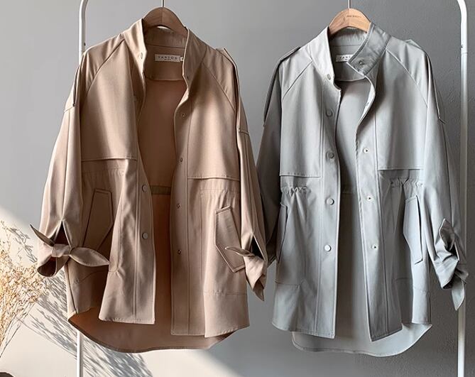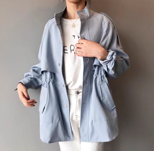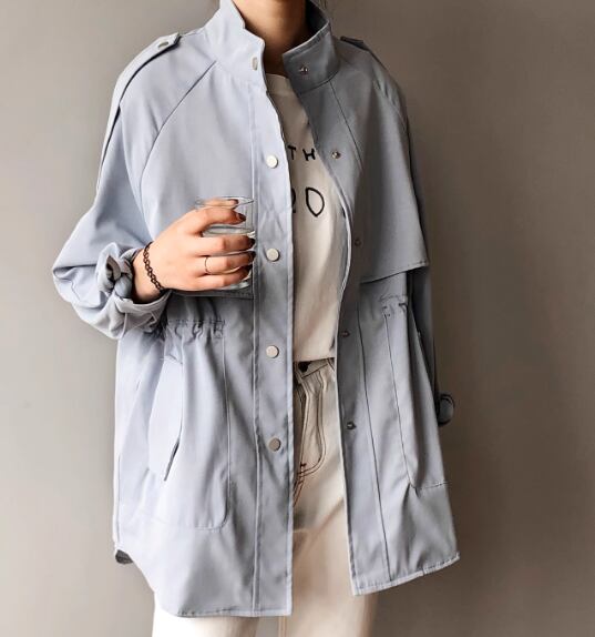 レディース ジャケット コート アウター 上着 ウィンドブレーカー トレンチ ミドル丈 長袖 ハイネック スタンドカラー ポケット ボタン 切り替えデザイン 大人可愛い きれいめ シンプル カジュアル 上品 おしゃれ かっこいい こなれ感 ボーイッシュ ルーズ 個性的 クール エレガント ラグジュアリー ナチュラル 知的 ハンサム シック 高級感 スタイリッシュ 無地 春 ママ OL デート お出かけ 韓国 普段使い 着回し M L XL ゆったり カーキ ブルー アプリコット