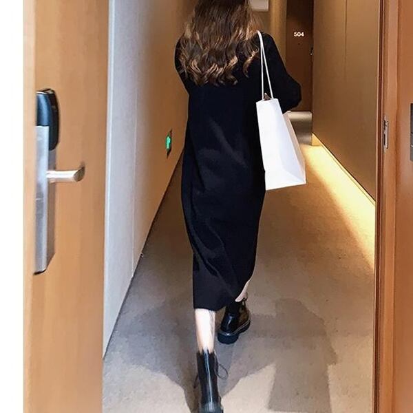 このワンピースはセーターニット素材を使用したプルオーバースタイルのドレスです。ロングスカートとミッドウエストデザインが体型を美しく見せてくれ、カジュアルで上品な雰囲気を醸し出し、様々なシーンで活躍します。トレンド感のあるニットドレスで、おしゃれスタイルを楽しめんでください。