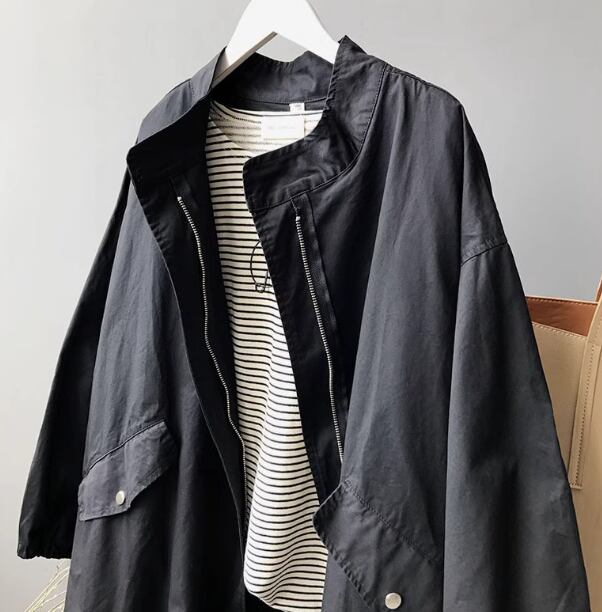レディース ジャケット アウター 上着 ウィンドブレーカー ミドル丈 長袖 スタンドカラー ストレート Iライン ファスナー ポケット 薄手 大人可愛い きれいめ シンプル カジュアル 上品 おしゃれ かっこいい レトロ ラフ メンズライク ボーイッシュ ルーズ クール ナチュラル ハンサム シック 高級感 スタイリッシュ 無地 春 秋 体型カバー 普段使い 着回し トレンド 流行 S M L ゆったり ゆる 大きめ オーバーサイズ ブラック カーキ ネイビー