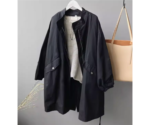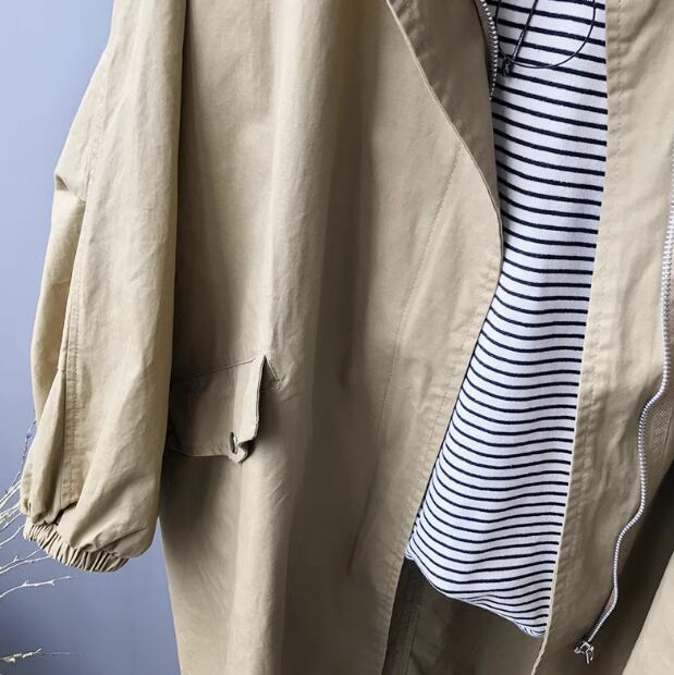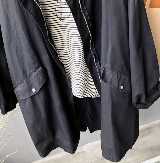 メンズライクな落ち着いたカラーがかっこいいミドル丈のウインドブレーカー。