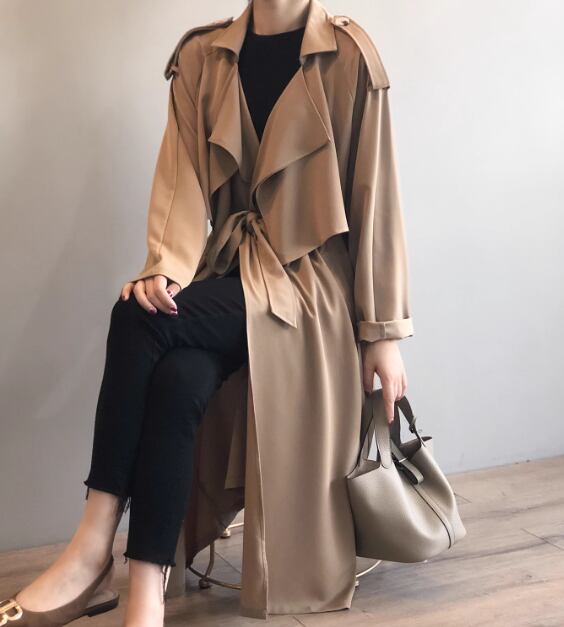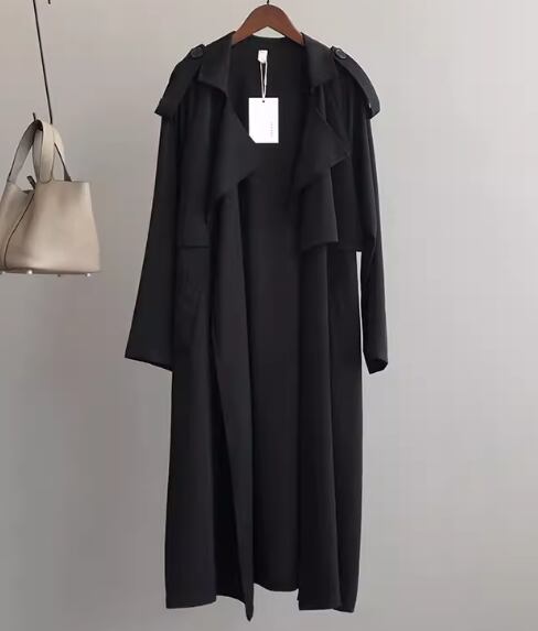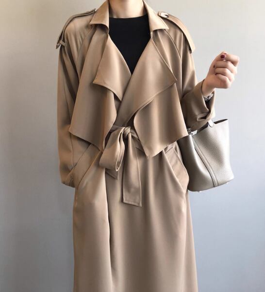 レディース コート アウター 上着 ロングコート トレンチ ロング 長袖 襟付き ドレープ ウエストマーク ウエストリボン ポケット 切り替えデザイン 薄手 大人可愛い きれいめ シンプル カジュアル 上品 おしゃれ かっこいい レトロ こなれ感 ボーイッシュ ルーズ クール エレガント クラシカル ナチュラル 知的 ハンサム シック スタイリッシュ 無地 春 秋 ママ OL 通勤 デート お出かけ 韓国 普段使い 着回し M L ゆったり ブラック カーキ
