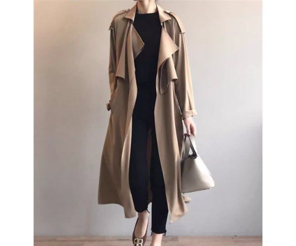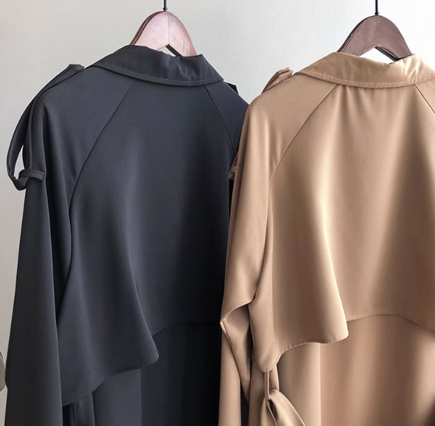 上品で落ち着いた大人カラーとスタイリッシュなデザインがかっこいいロング丈のトレンチコート。
