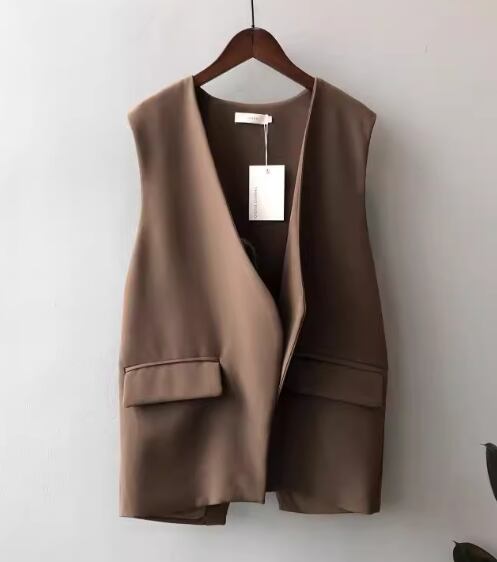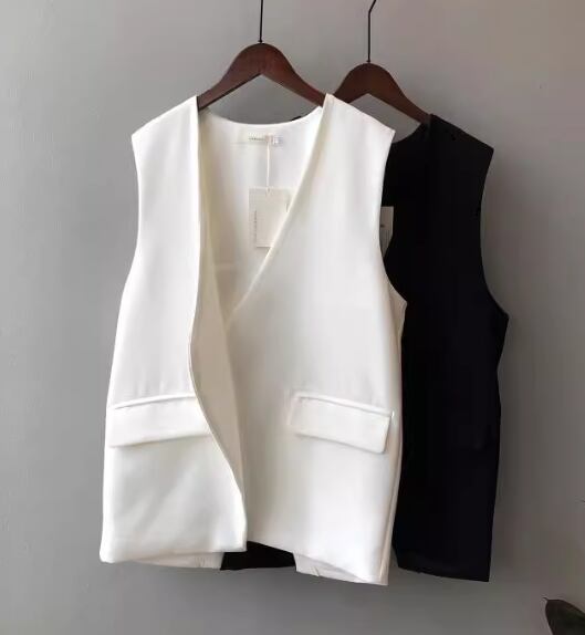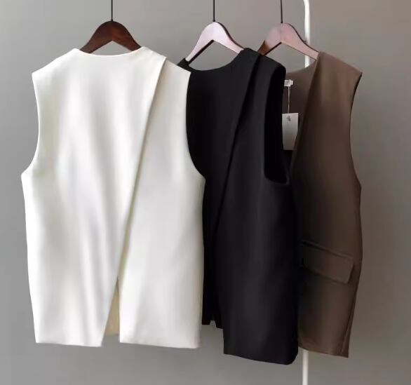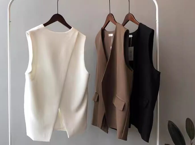 レディース トップス ジャケット ベスト スーツ 前開き ミドル丈 袖なし ノースリーブ Vネック バックスリット ボタンなし ステッチ 大人可愛い きれいめ シンプル カジュアル 上品 おしゃれ かっこいい こなれ感 ボーイッシュ ルーズ クール エレガント クラシカル ナチュラル 知的 ハンサム シック 高級感 オフィスカジュアル スタイリッシュ 無地 春 夏 オフィス ビジネス OL 通勤 重ね着 韓国 普段使い 着回し レイヤード S M L ゆったり ホワイト ブラック ブラウン