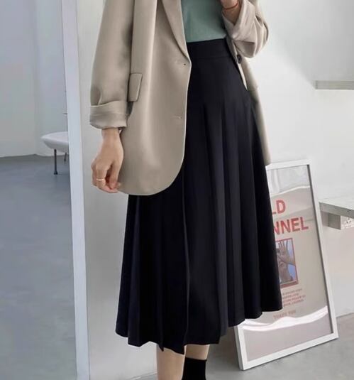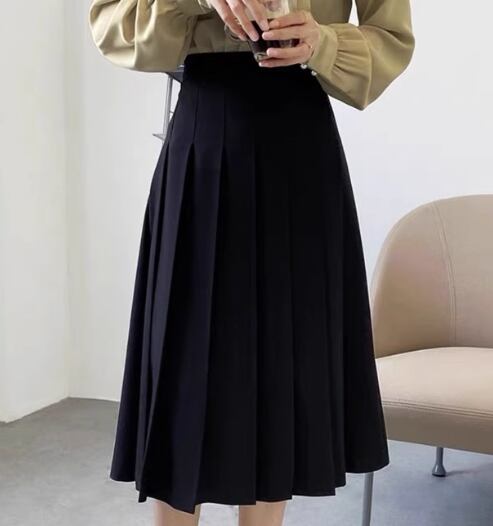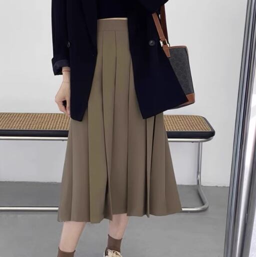 レディース スカート プリーツスカート 膝下 ミモレ スリム 細身 Aライン プリーツ ハイウエスト 大人可愛い きれいめ シンプル カジュアル 上品 おしゃれ レトロ ガーリー エレガント クラシカル ナチュラル 知的 清潔感 シック 高級感 オフィスカジュアル スタイリッシュ 無地 春 秋 デート お出かけ 脚長 普段使い 着回し 清楚 トレンド 流行 S M L XL 小さめ ブラック カーキ