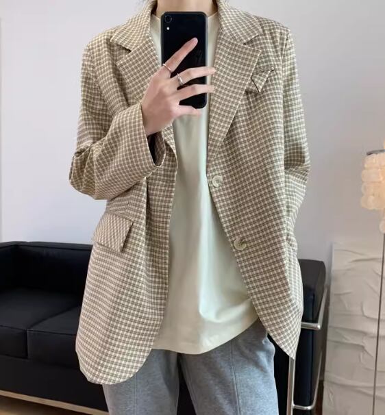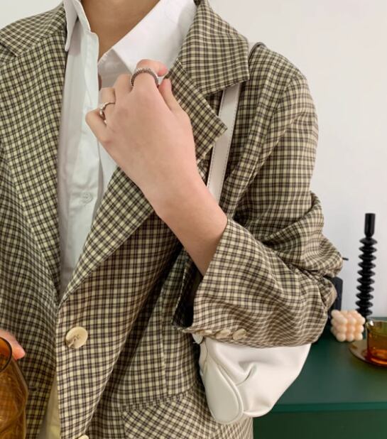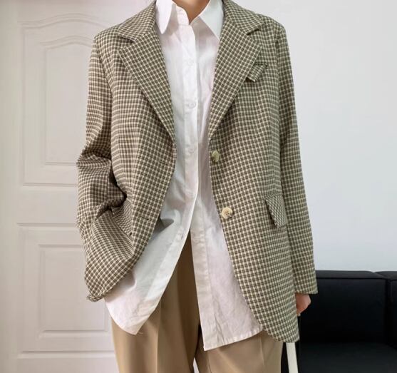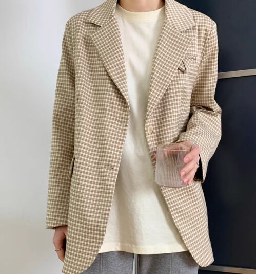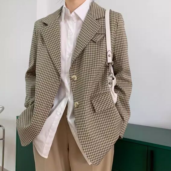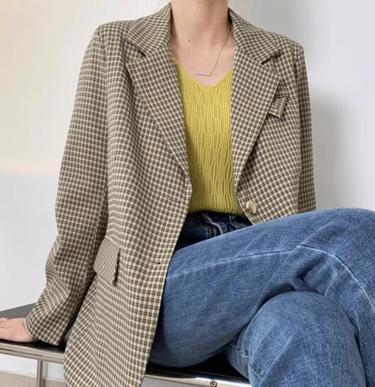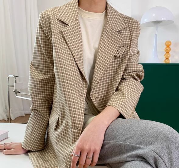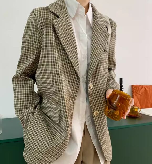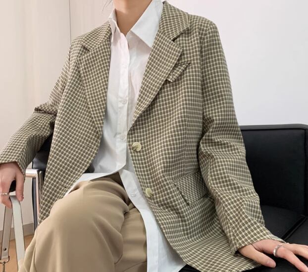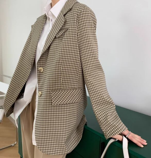 レディース ジャケット スーツ アウター 上着 ミドル丈 長袖 襟付き スーツカラー ポケット ボタン 綿 大人可愛い きれいめ シンプル カジュアル 上品 おしゃれ かっこいい レトロ こなれ感 ボーイッシュ ルーズ クール エレガント クラシカル ナチュラル 知的 清潔感 ハンサム シック 高級感 オフィスカジュアル スタイリッシュ チェック 春 夏 ビジネス OL 通勤 普段使い 着回し トレンド 流行 日焼け防止 日焼け対策 M L ゆったり ゆる 大きめ オーバーサイズ ブラウン グリーン