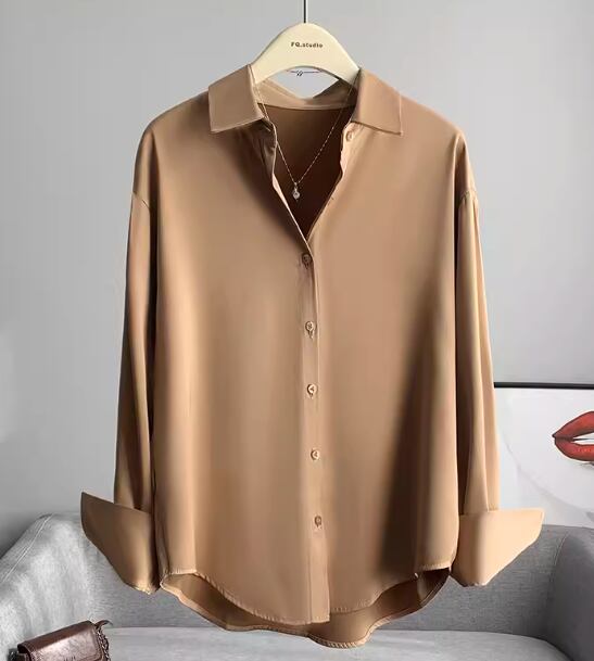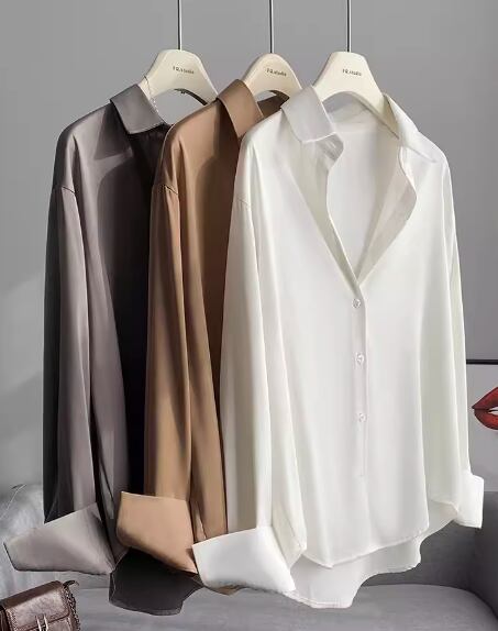 レディース トップス シャツ ミドル丈 長袖 襟付き ドレープ 前開き ボタン しわ防止加工 サテン 大人可愛い きれいめ シンプル カジュアル 上品 おしゃれ かっこいい レトロ こなれ感 ボーイッシュ ルーズ クール エレガント とろみ感 クラシカル ナチュラル 知的 清潔感 爽やか ハンサム シック 高級感 オフィスカジュアル 無地 春 秋 オフィス ビジネス OL 通勤 韓国 普段使い 着回し 清楚 S M L ゆったり ゆる 大きめ ホワイト グレー 大人カラー シャンパン 大人デザイン