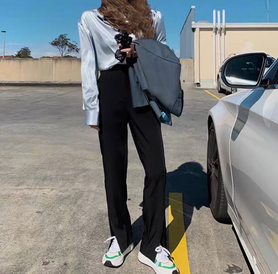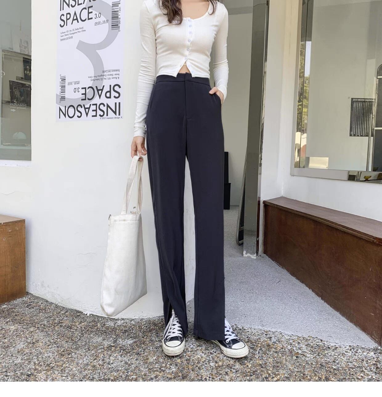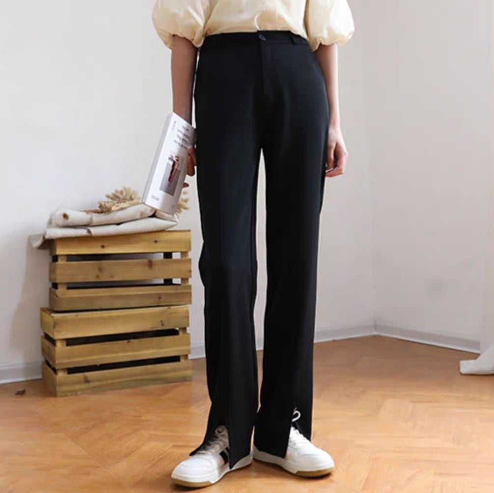 レディース パンツ ボトムス ストレートパンツ スラックス フルレングス セミフレア スリット サイドスリット ハイウエスト コンサバ きれいめ シンプル おしゃれ かっこいい ラフ メンズライク マニッシュ ボーイッシュ クール 都会的 ベーシック アクティブ ナチュラル 無地 春 夏 秋 冬 オールシーズン 通勤 休日 カフェ 体型カバー 美脚 脚長 普段使い 着回し トレンド 流行 インスタ映え 定番 S M L XL 2XL 3XL 4XL 小さいサイズ 大きいサイズ ゆったり ゆる 黒 ブラック