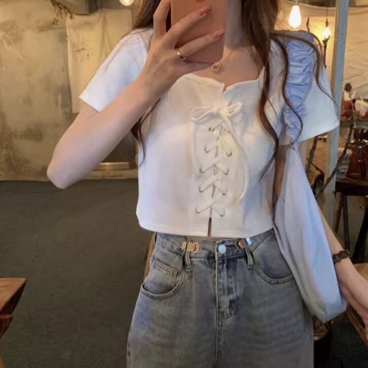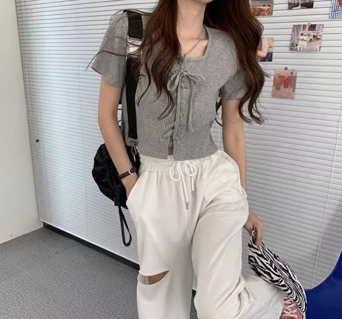 レディース トップス Tシャツ ショート丈 半袖 袖あり スクエアネック 襟なし リボン 薄手 ポリエステル かわいい 大人可愛い シンプル カジュアル おしゃれ かっこいい レトロ 個性的 存在感 無地 夏 秋 女性用 10代 20代 デート お出かけ リゾート 旅行 海 レストラン ビーチ 公園 女子会 休日 バカンス ガーデン ショッピング ライブ カフェ フェス コーデ 普段使い 着回し モテ M L XL 2XL 白 ホワイト グレー 大人カラー 秋カラー カラバリ 灰色