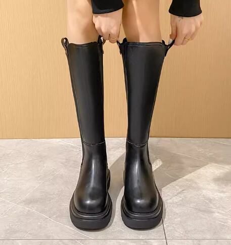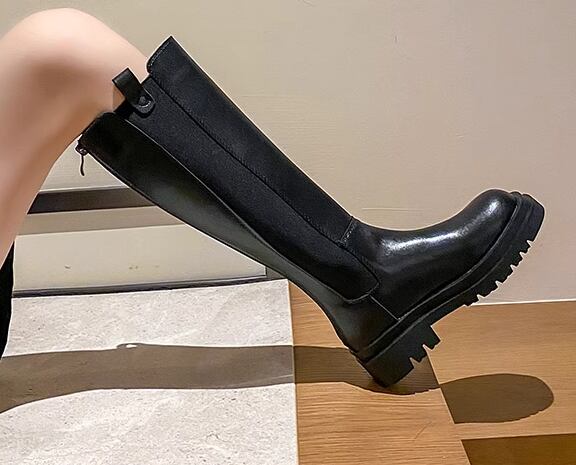 レディース ブーツ ロングブーツ 5cm ミドルヒール フラット ラバーソール ラウンドトゥ 防水加工 バックファスナー レザー 大人可愛い きれいめ シンプル カジュアル 上品 おしゃれ かっこいい レトロ エレガント ボーイッシュ クール セクシー こなれ感 シック クラシック スタイリッシュ 春 秋 冬 無地 デート お出かけ デイリー 普段使い 22.5cm 23.0cm 23.5cm 24.0cm 24.5cm ブラック