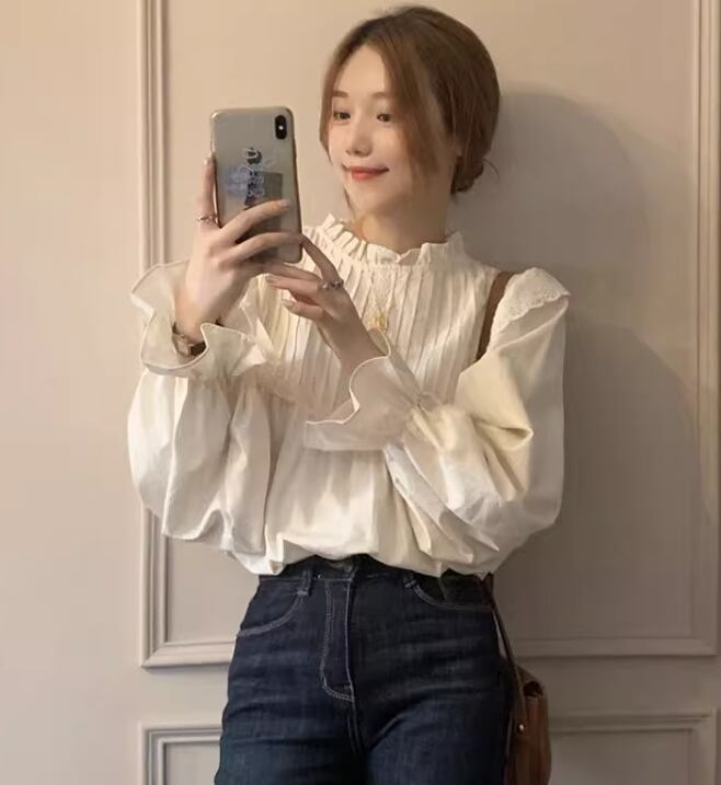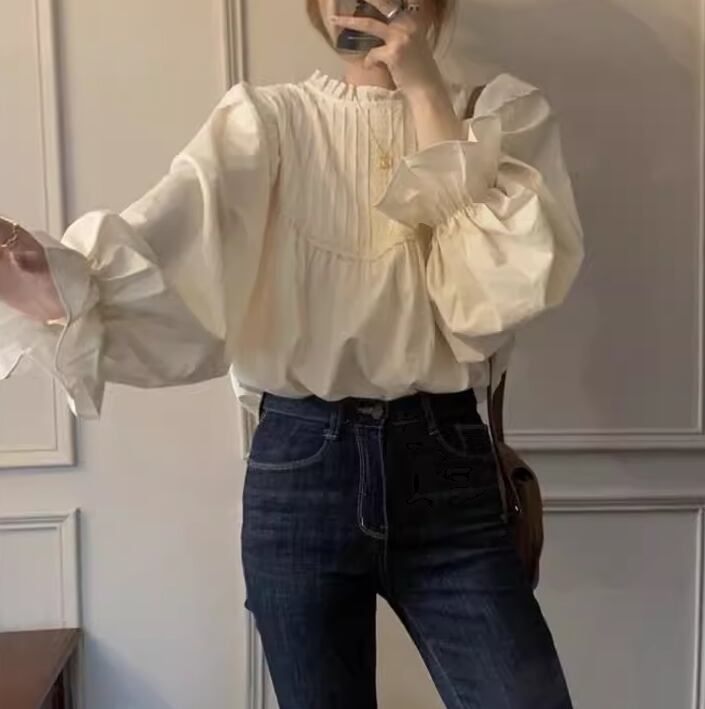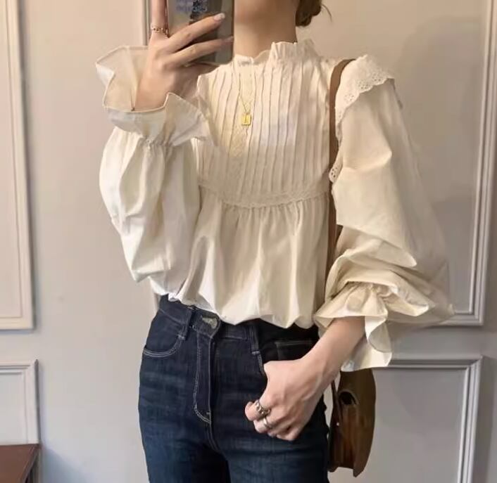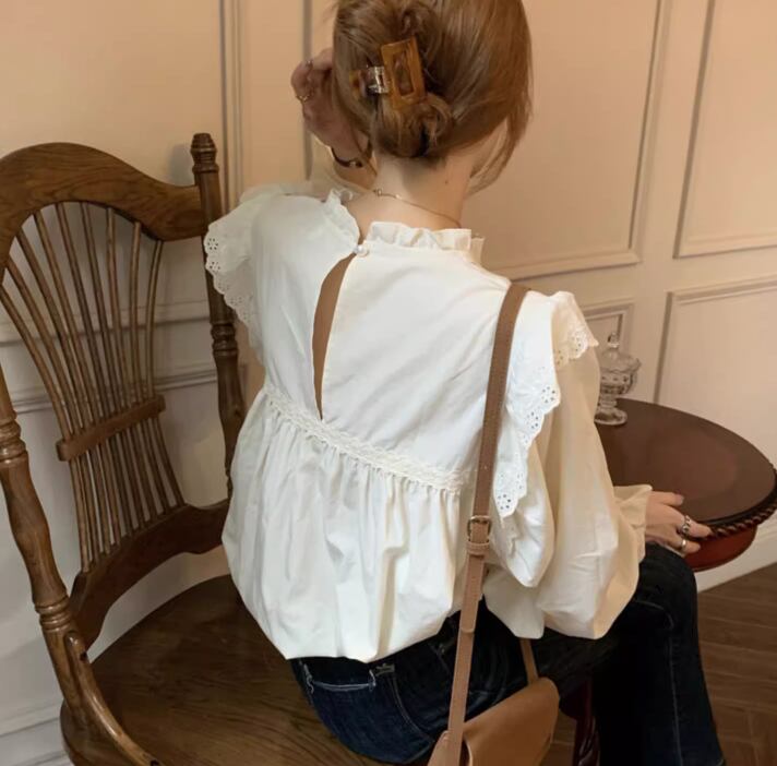 レディース トップス ブラウス ミディアム丈 長袖 萌袖 ベルスリーブ 袖あり ラウンドネック 襟なし レース かわいい 大人可愛い きれいめ シンプル 上品 おしゃれ レトロ 主役級 存在感 フォーマル キュート 無地 春 秋 女性用 10代 20代 30代 通勤 デート お出かけ リゾート 旅行 レストラン 公園 女子会 休日 ガーデン ショッピング お花見 カフェ コーデ 普段使い 着回し モテ 清楚 M L XL オフホワイト 大人カラー 春カラー 秋カラー