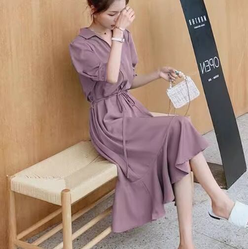 レディース ワンピース シャツワンピ ミモレ ロング 半袖 Vネック 襟付き シフォン ウエストマーク ウエストリボン 大人可愛い きれいめ シンプル カジュアル 上品 おしゃれ レトロ ガーリー ルーズ エレガント ナチュラル 知的 清潔感 爽やか シック 高級感 華やか 優しい 穏やか 涼しげ 柔らかい 無地 夏 普段使い 清楚 S M L XL ゆったり ゆる ブラック イエロー ブルー レッド パープル