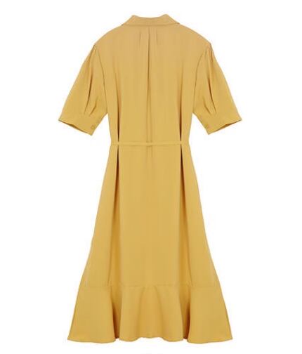 上品で落ち着いた色味が大人可愛い半袖のシャツワンピース。