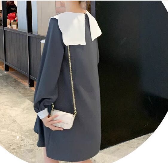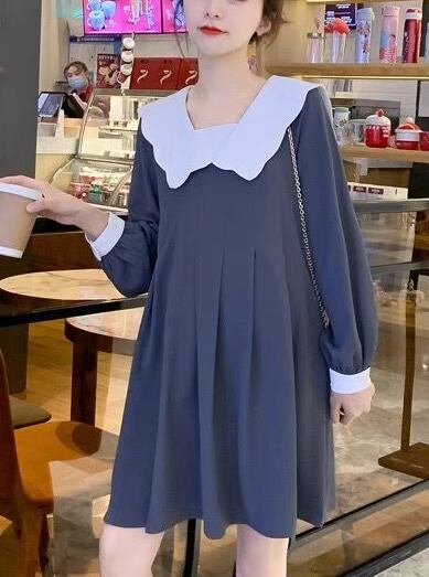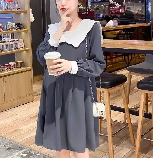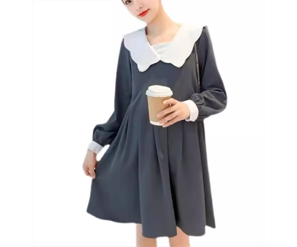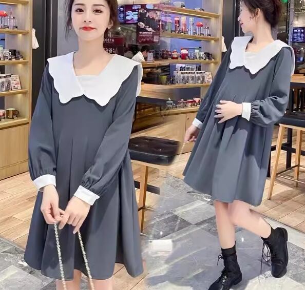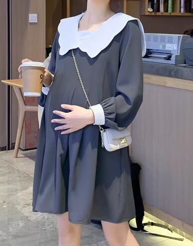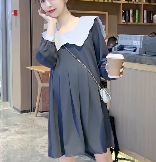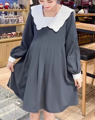 レディース ワンピース マタニティウェア 膝丈 長袖 襟付き ビッグカラー Aライン フリル かわいい 大人可愛い きれいめ シンプル カジュアル 上品 おしゃれ レトロ ガーリー ルーズ ラブリー キュート シック 優しい 穏やか 無地 秋 ママ マタニティ 妊婦 デート お出かけ 楽ちん M L XL ゆったりウエスト グレー