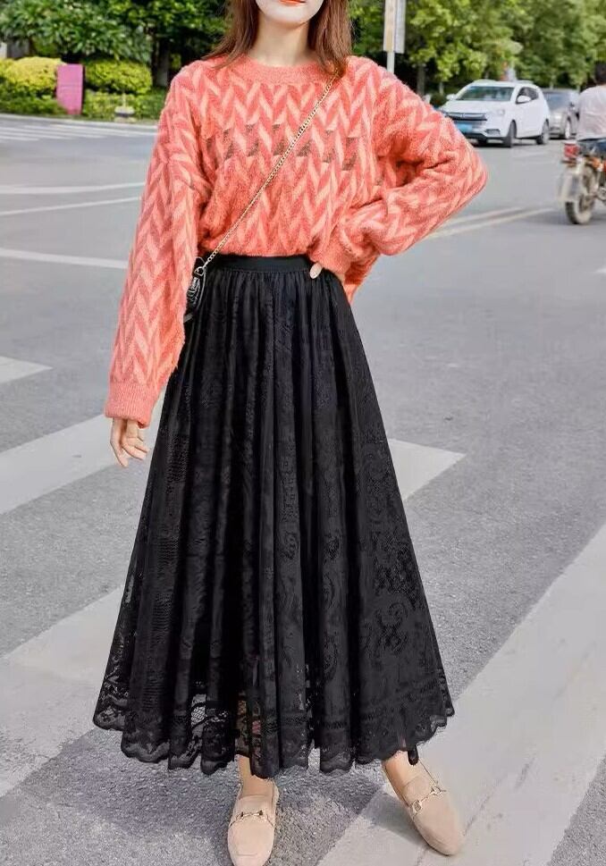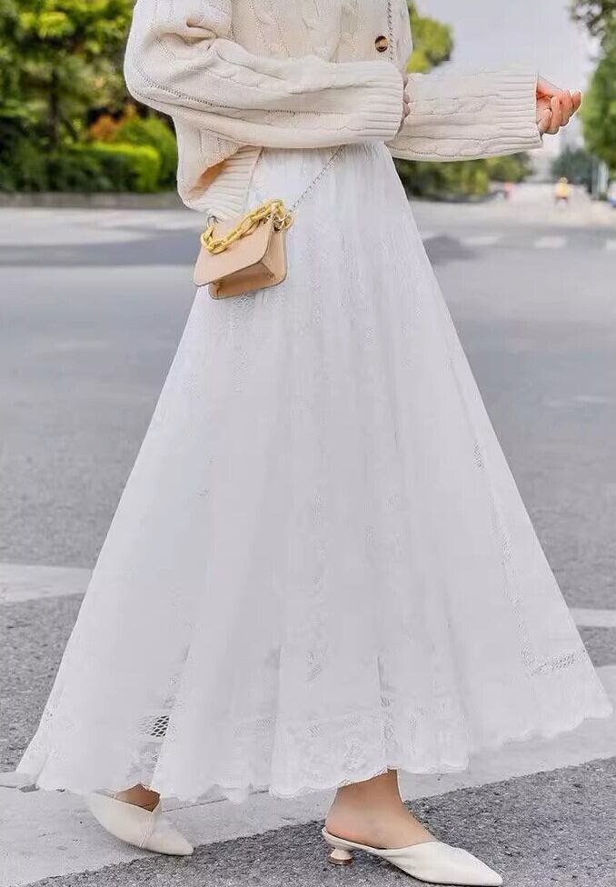 レースとAラインのシルエットが女性らしいロングスカートです。