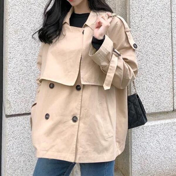 レディース アウター ジャケット コート ハーフコート トレンチコート ミドル丈 長袖 ダブルブレスト タック スプリングコート ライトアウター 羽織り シンプル カジュアル 大人カジュアル きれいめ ゆったり おしゃれ ママ 10代 20代 30代 40代 デート お出かけ 普段使い デイリー 韓国 トレンド 可愛い 大人 大人女子 大人可愛い 海外 旅行 海外旅行 仕事 通勤 通学 オフィス