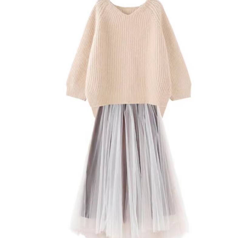 2点セット レディース スカート トップス ニット セーター プルオーバー セットアップ ツーピーストップス ミモレ 長袖 萌袖 Vネック 襟なし ノーカラー ワイド Aライン レース チュール もこもこ ふわふわ ふっくら レースアップ 透け感 シースルー 伸縮性 かわいい 大人可愛い きれいめ シンプル カジュアル 上品 おしゃれ こなれ感 ラフ ルーズ 個性的 エレガント 主役級 存在感 とろみ感 抜け感 ラブリー キュート ベーシック ロマンティック デート お出かけ 休日 コーデ ゆったり ゆる