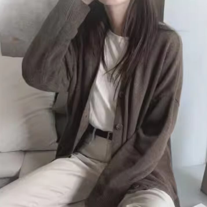上品さとカジュアルさを兼ね備えたニットカーディガン