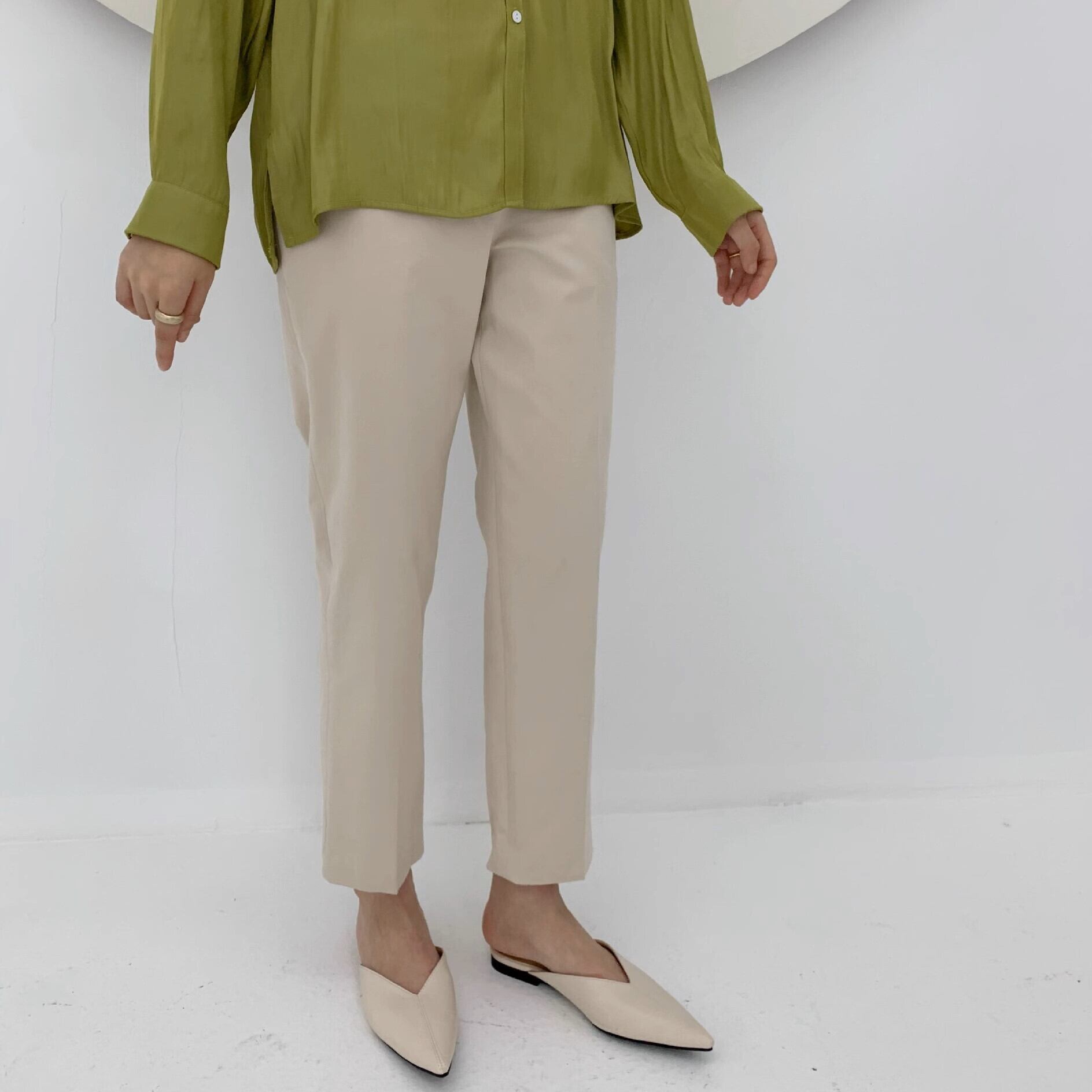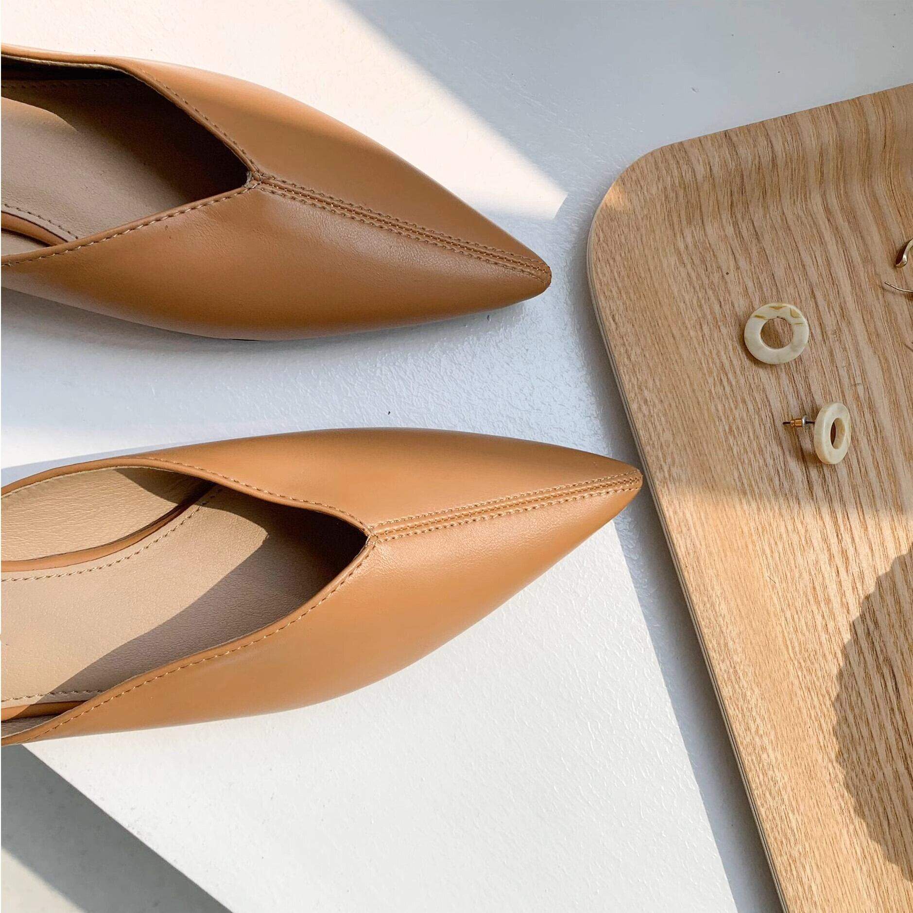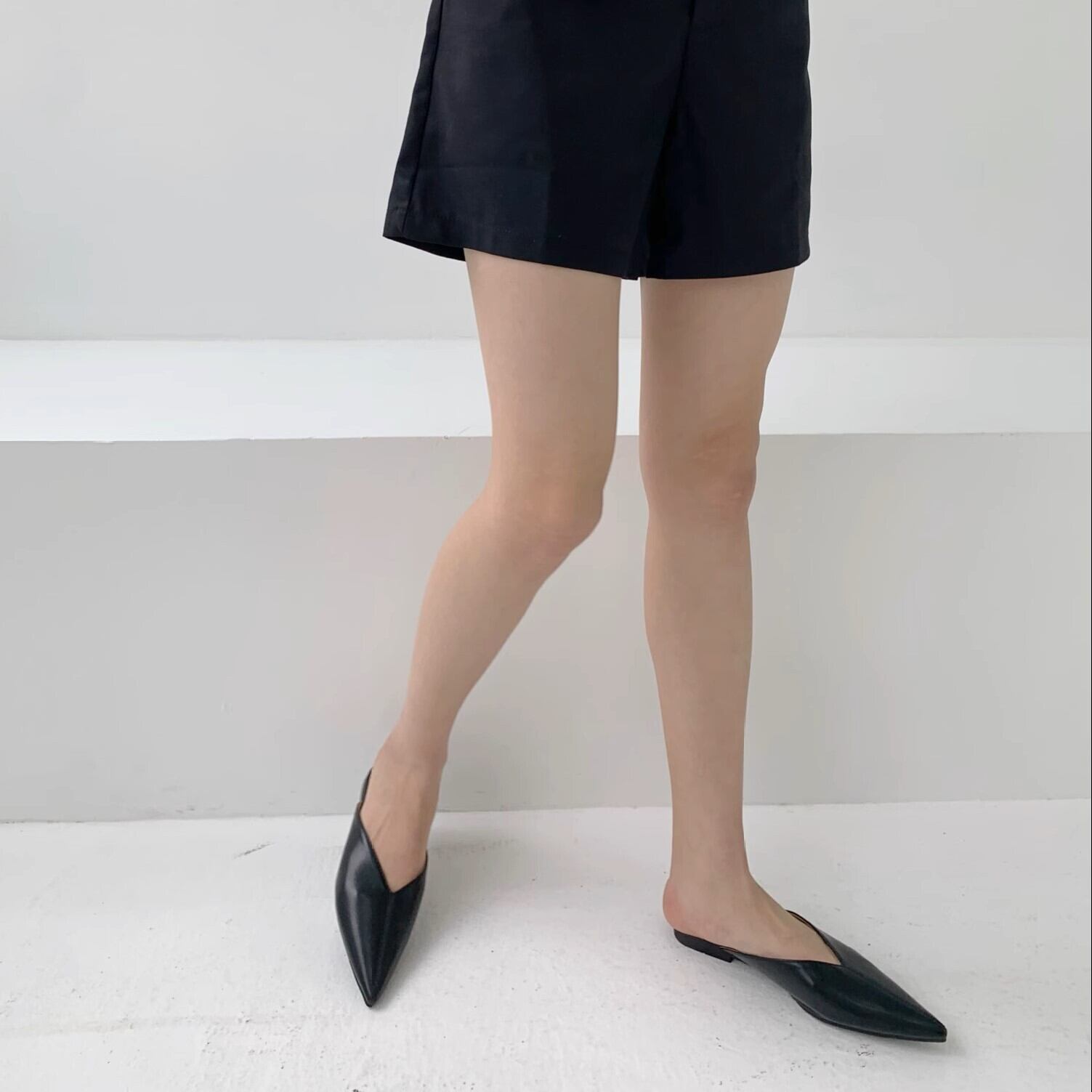 裸足でも靴下を合わせても楽しめる、シンプルで上品なデザインのフラットミュールです。