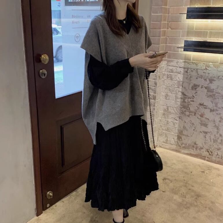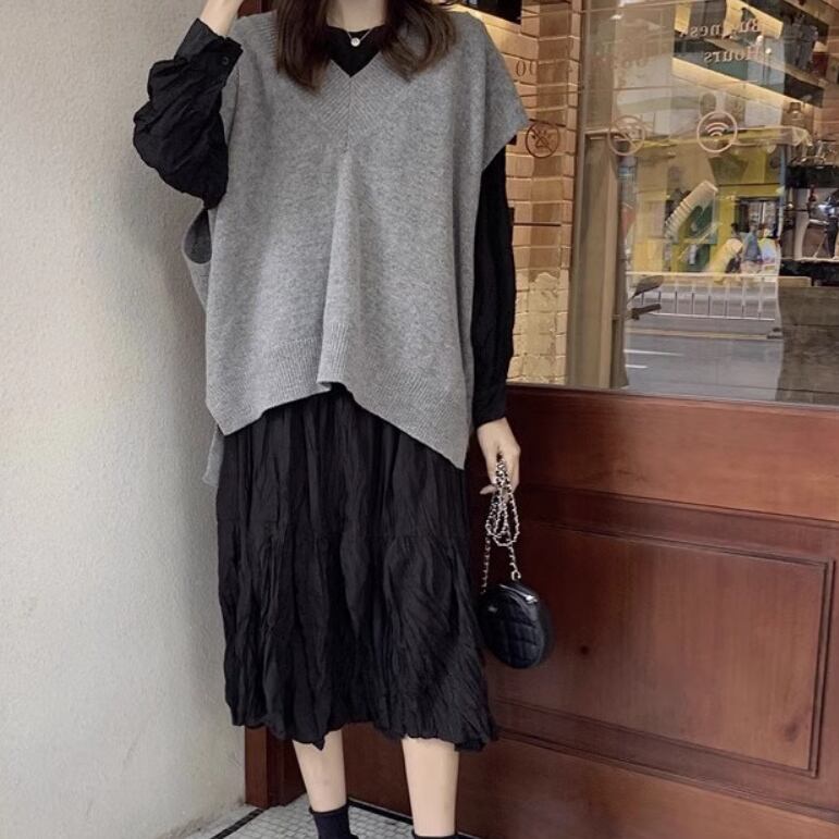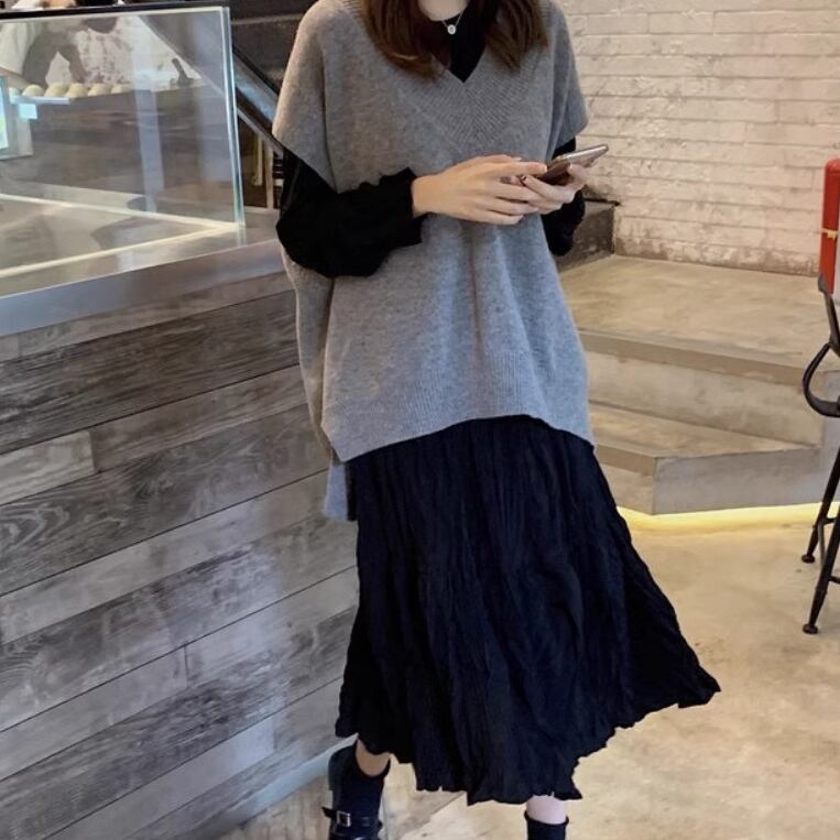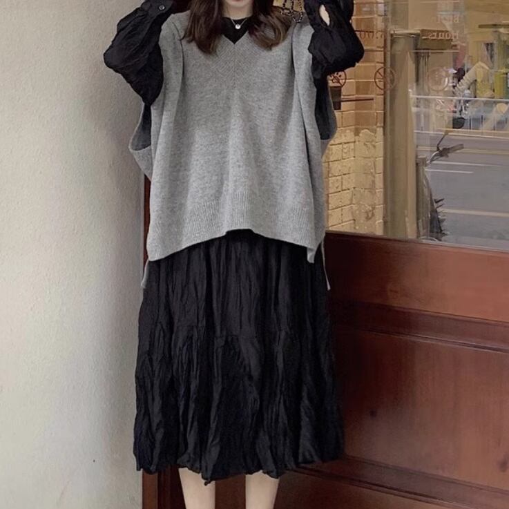 2点セット レディース スカート ワンピース ニット セーター プルオーバー セットアップ ドレス ロングスカート ツーピーストップス ロング Vネック 襟なし ノーカラー ワイド もこもこ ふわふわ ふっくら 伸縮性 かわいい 大人可愛い きれいめ シンプル カジュアル 上品 おしゃれ かっこいい レトロ こなれ感 ラフ ルーズ 個性的 エレガント 主役級 存在感 とろみ感 抜け感 ラブリー キュート 都会的 ナチュラル 無地 春 秋 お出かけ 休日 カフェ 重ね着 コーデ 普段使い ゆったり ゆる