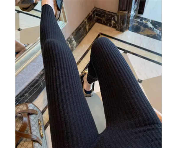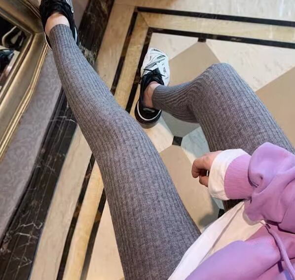 シックなカラーが大人っぽいフルレングスのニットレギンス。