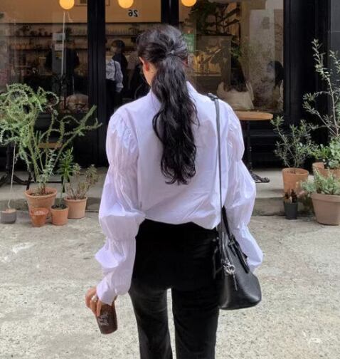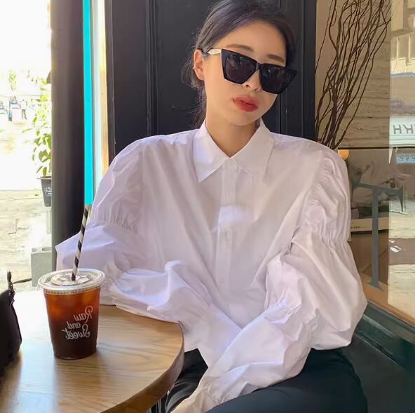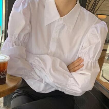 レディース トップス シャツ ブラウス 長袖 バルーン袖 ポロカラー ストレート フェミニン 薄手 かわいい 大人可愛い きれいめ カジュアル 上品 おしゃれ ガーリー 個性的 クール モード系 エレガント 主役級 存在感 ヴィンテージ ラブリー 都会的 ロマンティック 無地 春 発表会 母の日 ママ オフィス OL 学生 デート お出かけ リゾート 旅行 レストラン 休日 バカンス ホテル ショッピング カフェ 普段使い 着回し 清楚 インスタ映え M L XL ホワイト