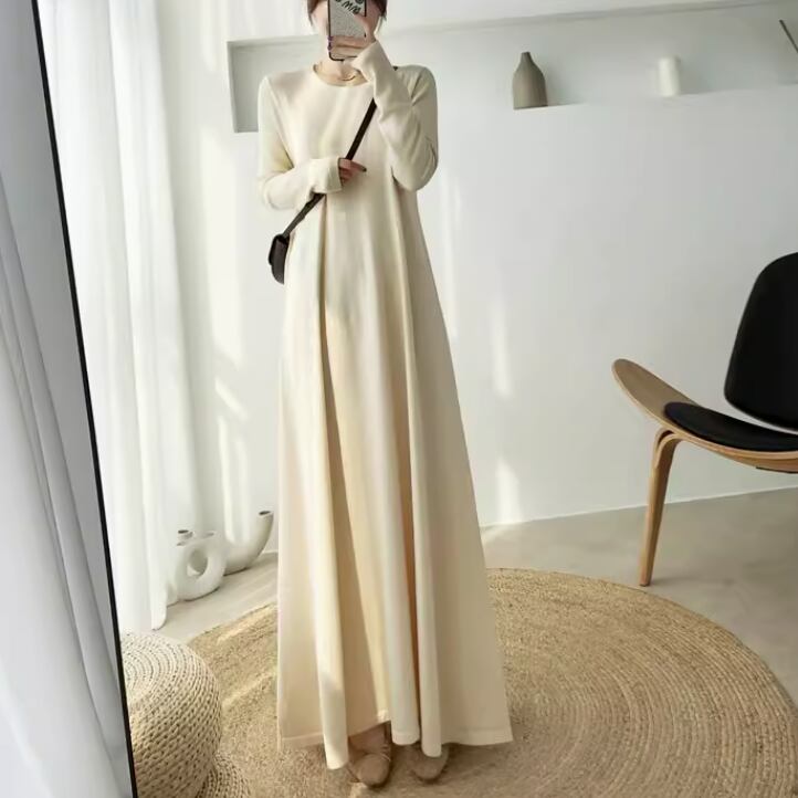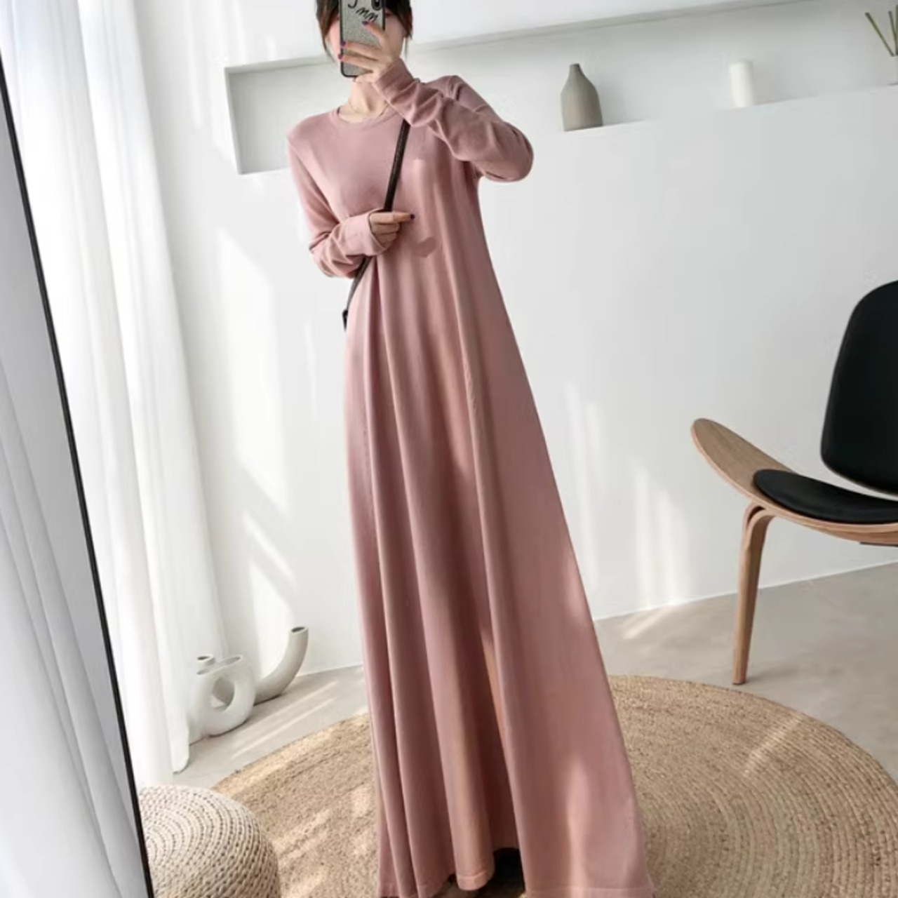レディース スカート ワンピース ニット セーター プルオーバー ドレス ニットワンピ ニットスカート ロングスカート ロング マキシ 長袖 襟なし ノーカラー ワイド Aライン 裾ワイド 伸縮性 かわいい 大人可愛い きれいめ シンプル カジュアル 上品 おしゃれ レトロ こなれ感 ラフ 個性的 エレガント モダン 主役級 存在感 とろみ感 抜け感 ヴィンテージ ラブリー 都会的 ベーシック ロマンティック ナチュラル 無地 秋 冬 女子会 休日 コーデ 体型カバー モテ 清楚 M L XL 2XL