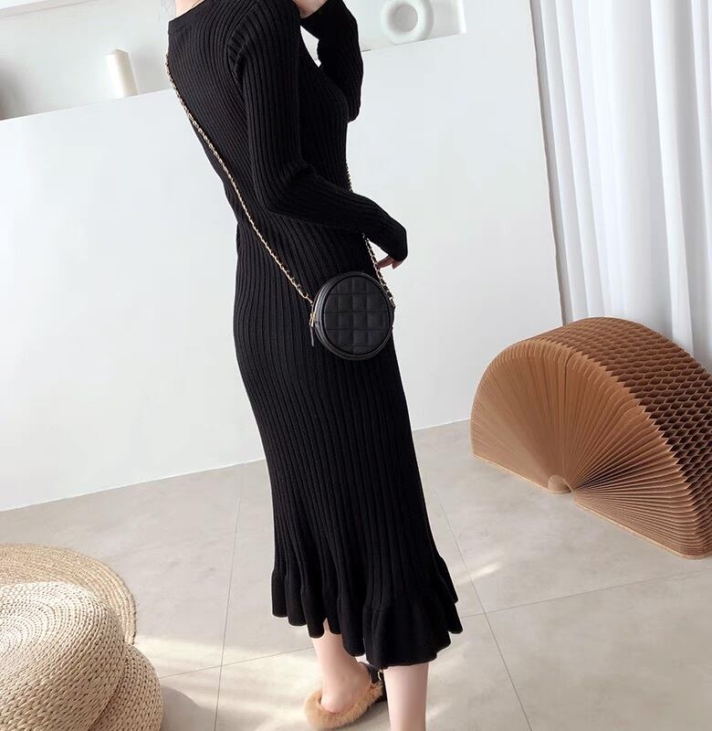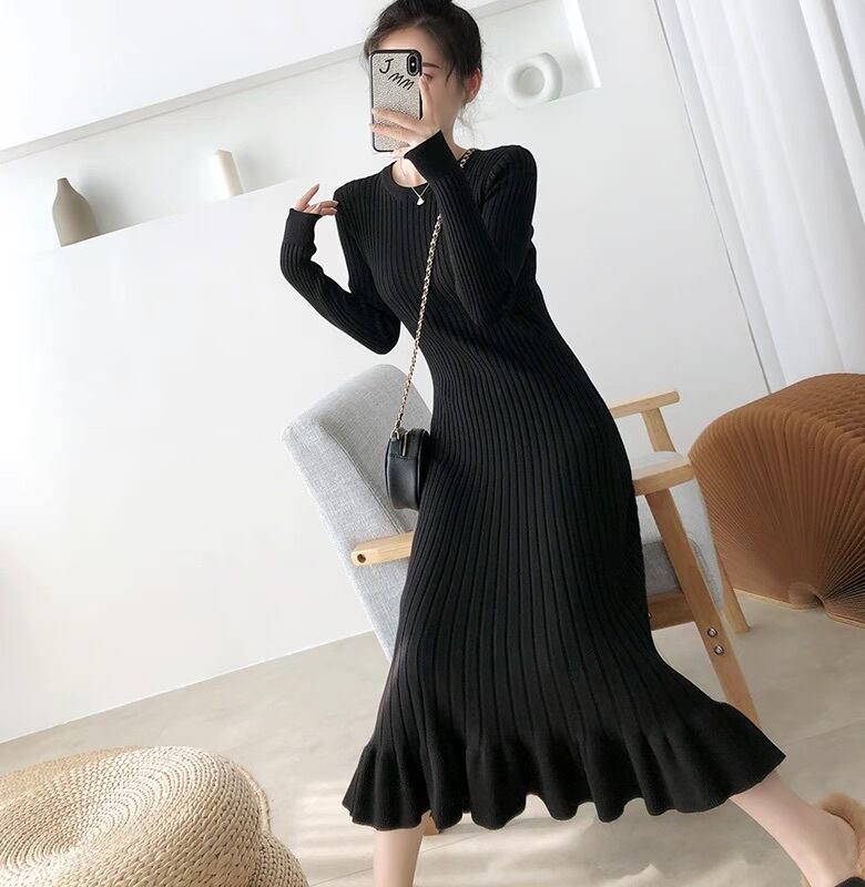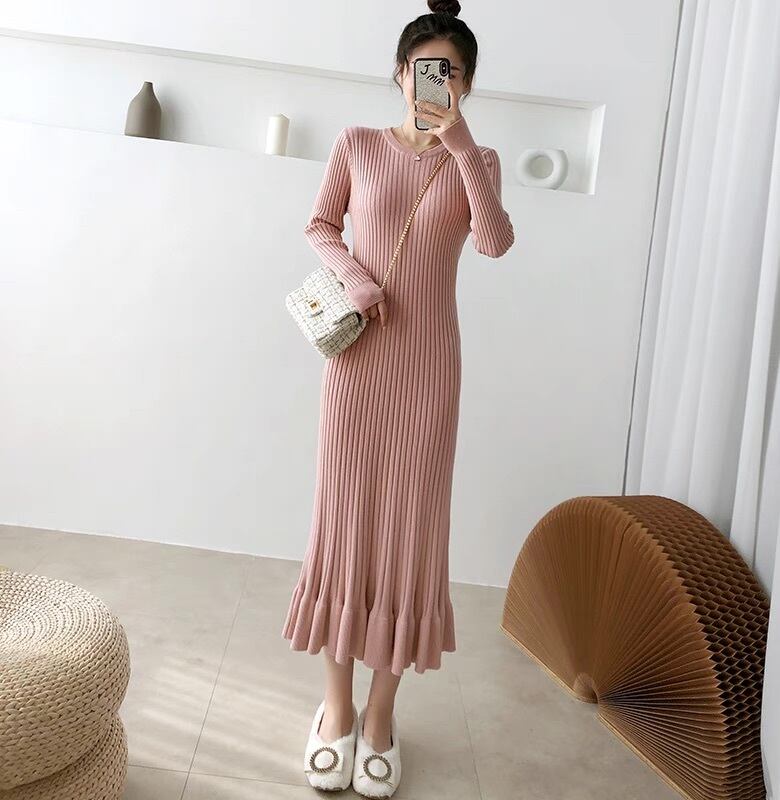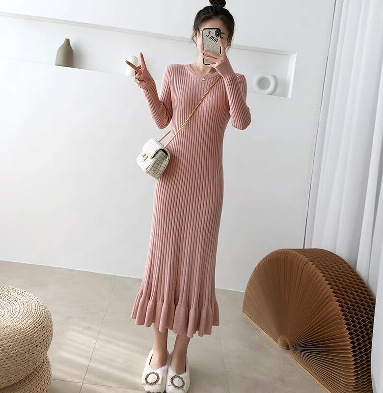 レディース ワンピース ニット ロング 長袖 Uネック ラウンドネック フレア Aライン リブニット かわいい 大人可愛い きれいめ 上品 おしゃれ レトロ ガーリー クール エレガント モダン ラブリー 都会的 ベーシック アクティブ ロマンティック ナチュラル 無地 秋 冬 デート お出かけ 女子会 休日 お花見 合コン コンパ カフェ 美脚 普段使い 着回し トレンド 流行 インスタ映え S M L XL 小さいサイズ 大きいサイズ 黒 ブラック 紫 ピンク アプリコット ベーシックカラー パープル