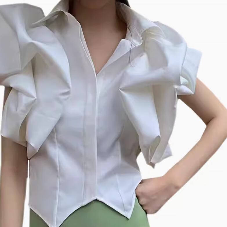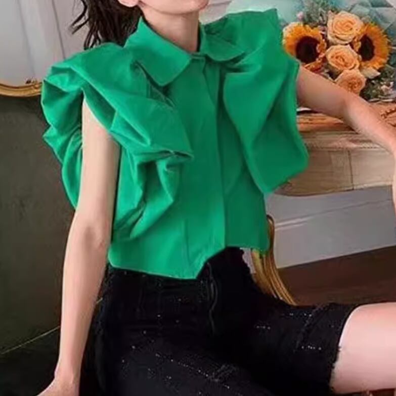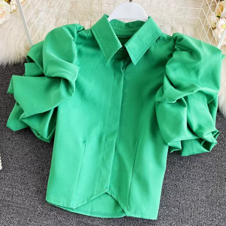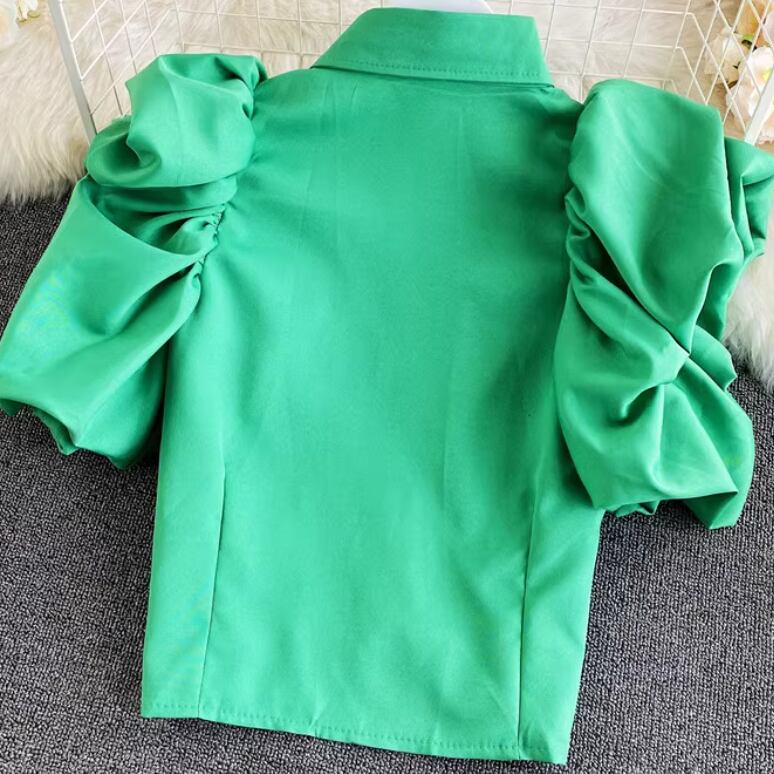 レディース トップス シャツ ブラウス 前開き 半袖 ボリューム袖 パフスリーブ 襟付き スリム 細身 スマート ふっくら ボタン 薄手 かわいい 大人可愛い きれいめ シンプル カジュアル 上品 おしゃれ レトロ こなれ感 ラフ ガーリー ルーズ 個性的 クール モード系 エレガント モダン 主役級 存在感 とろみ感 抜け感 ラブリー キュート 都会的 ロマンティック 無地 夏 デート お出かけ イベント レストラン 休日 ホテル 発表会 カフェ コーデ 普段使い モテ ホワイト ブラック グリーン