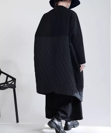 切り替えデザインがおしゃれな個性的なウールコート。