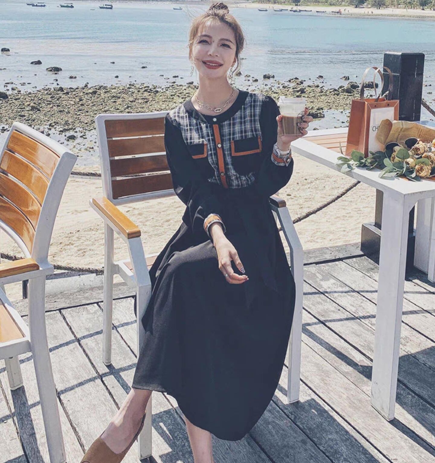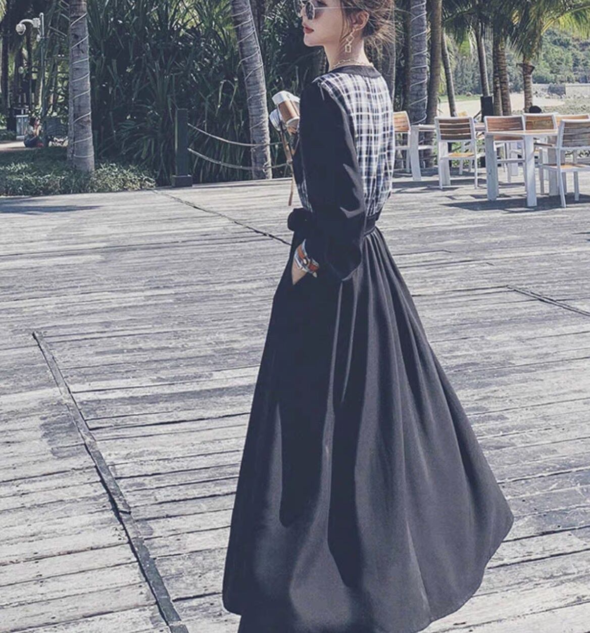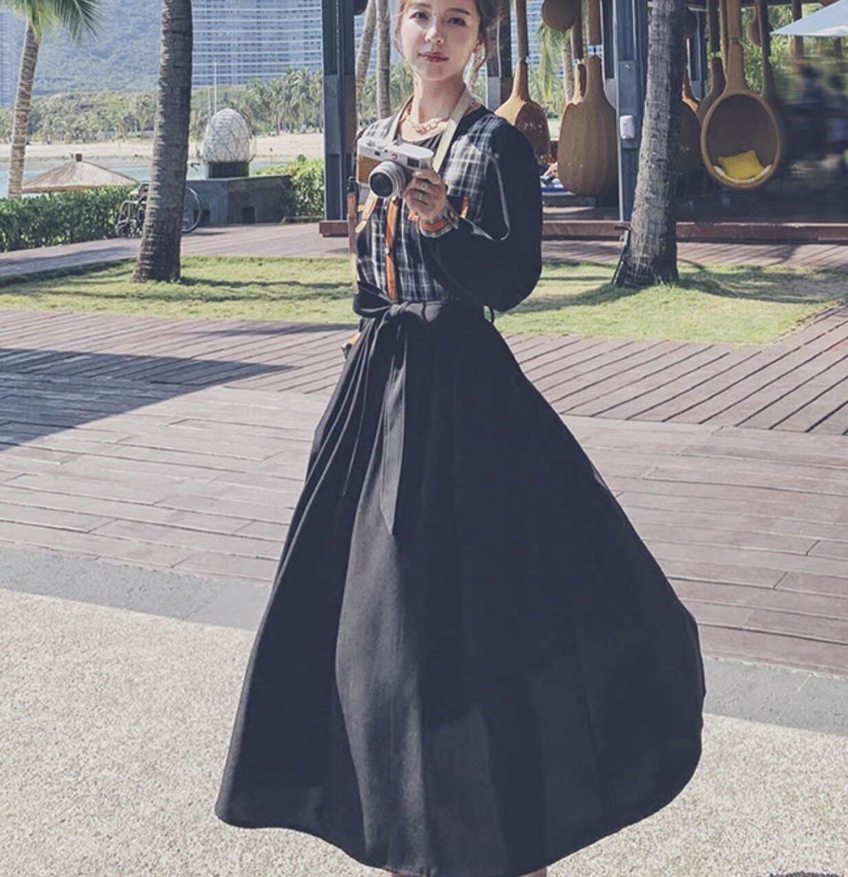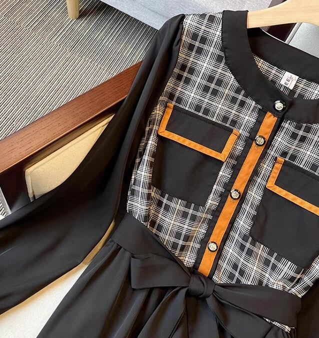 レディース ワンピース 長袖 Uネック ラウンドネック フレア Aライン フェミニン リボン ウエストリボン 切り替えデザイン バイカラー ドッキング 胸ポケット かわいい 大人可愛い 上品 おしゃれ レトロ こなれ感 ガーリー ラブリー キュート カントリー ナチュラル チェック 格子柄 春 秋 デート お出かけ リゾート 旅行 女子会 休日 ショッピング 合コン コンパ カフェ 婚活 普段使い 着回し モテ 清楚 トレンド 流行 インスタ映え S M L XL 小さいサイズ 大きいサイズ 黒 ブラック