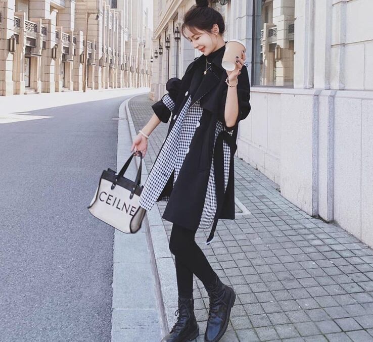 レディース コート アウター ミディアム トレンチ 長袖 Vネック 襟付き フェミニン ベルト ウエストマーク ハイウエスト 前開き 切り替えデザイン バイカラー ドッキング かわいい 大人可愛い 上品 おしゃれ かっこいい こなれ感 ガーリー 個性的 クール モード系 抜け感 ラブリー キュート 都会的 クラシカル ベーシック アクティブ ナチュラル チェック 格子柄 千鳥格子 春 秋 トレンド 流行 インスタ映え S M L XL 小さいサイズ 大きいサイズ 白 ホワイト 黒 ブラック モノトーン