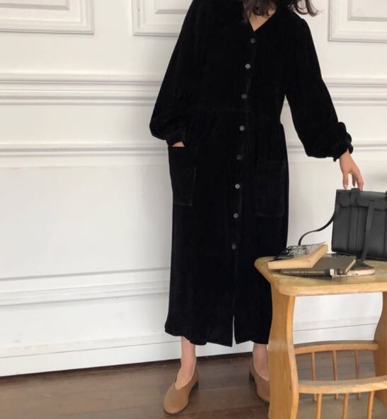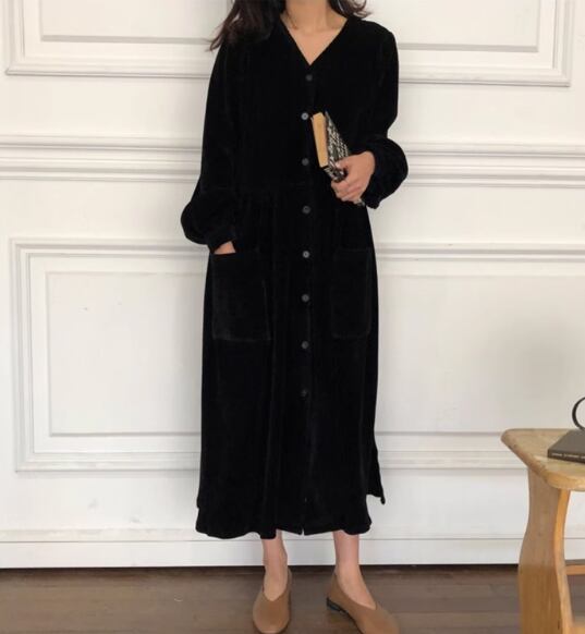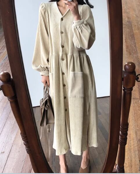 レディース ワンピース ロング マキシ 長袖 ボリューム袖 切り替え コーデュロイ かわいい 大人可愛い シンプル カジュアル こなれ感 ラフ とろみ感 抜け感 無地 秋 学生 学校 デート お出かけ 韓国 オルチャン コーデ 楽ちん 大きいサイズ ビッグ ゆったり ゆる 大きめ オーバーサイズ ビッグシルエット ゆったりウエスト 白 ホワイト 黒 ブラック