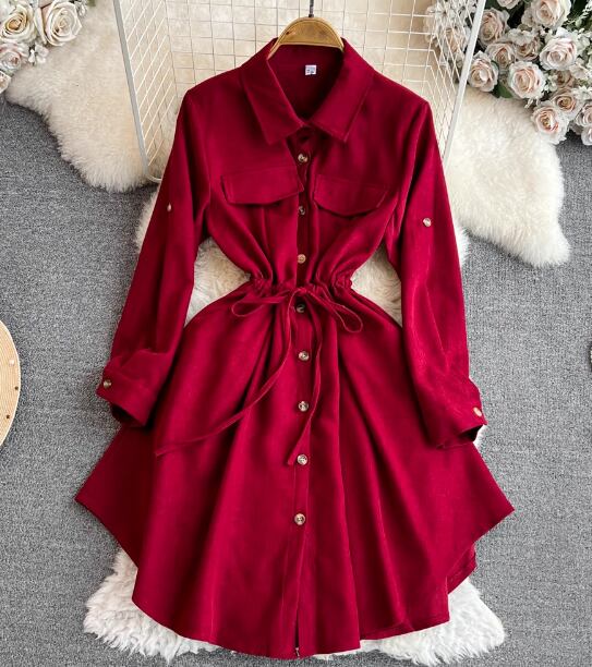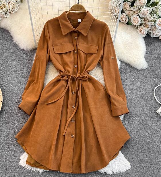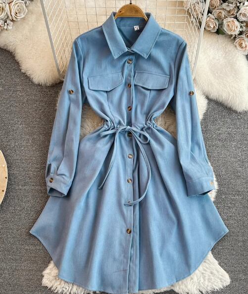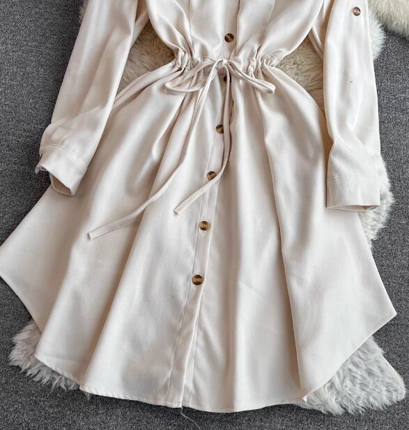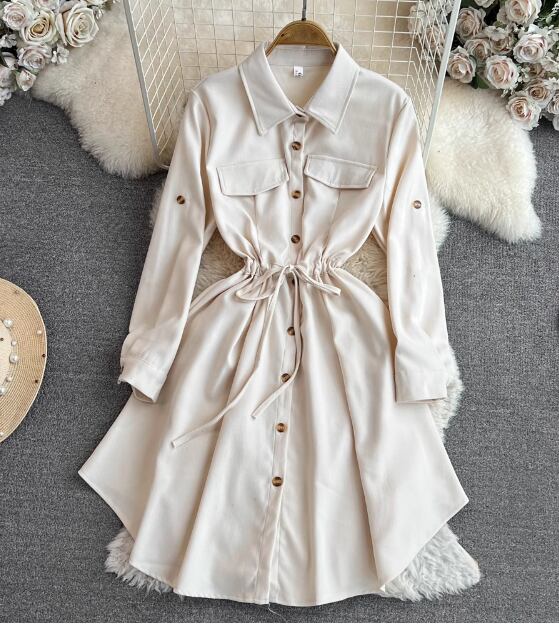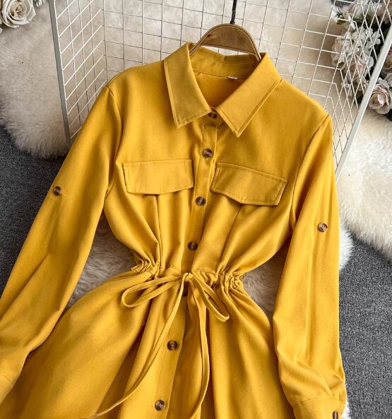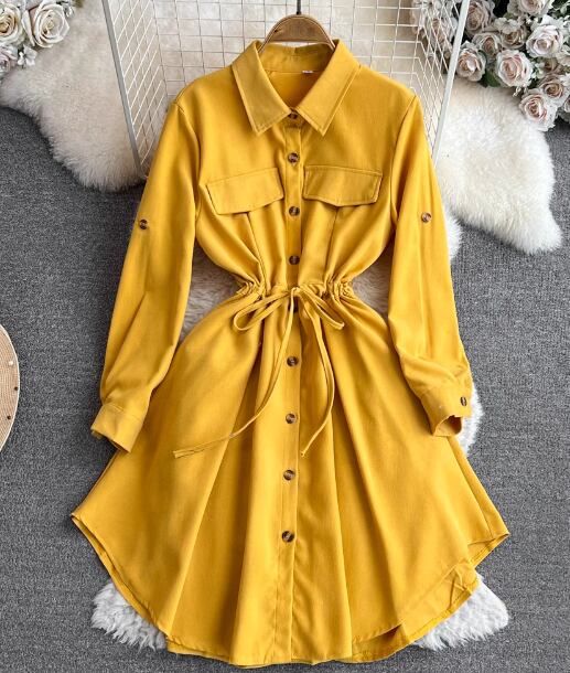 レディース ワンピース シャツワンピ 長袖 Aライン 切り替え ウエストマーク ウエストリボン かわいい 大人可愛い きれいめ シンプル カジュアル かっこいい レトロ アジアン エスニック フォーマル とろみ感 無地 春 秋 通勤 学生 学校 デート お出かけ 韓国 オルチャン コーデ 楽ちん 体型カバー 美脚 脚長 プチプラ 普段使い 着回し ホワイト ブラック ブラウン イエロー レッド