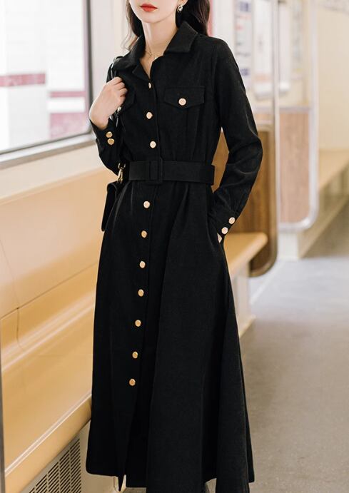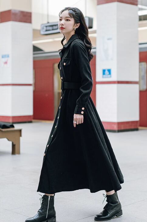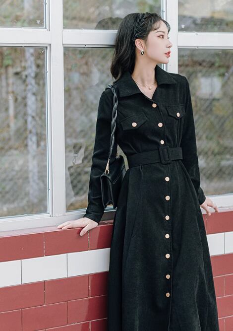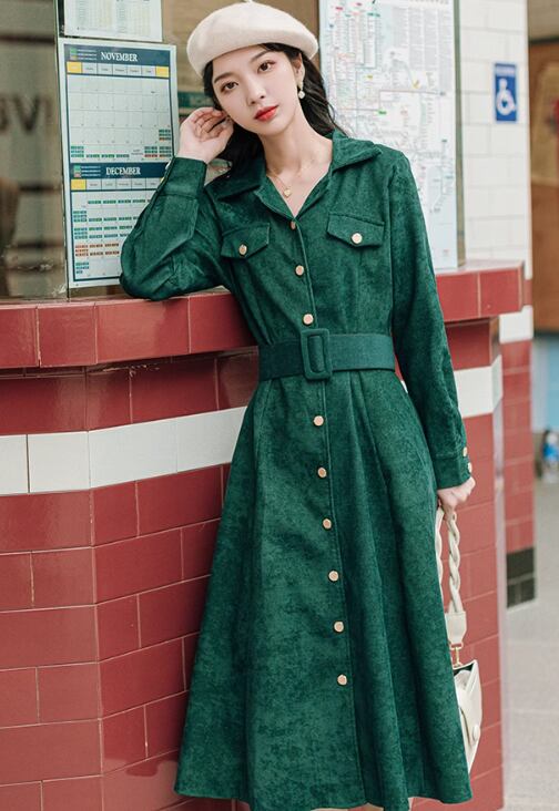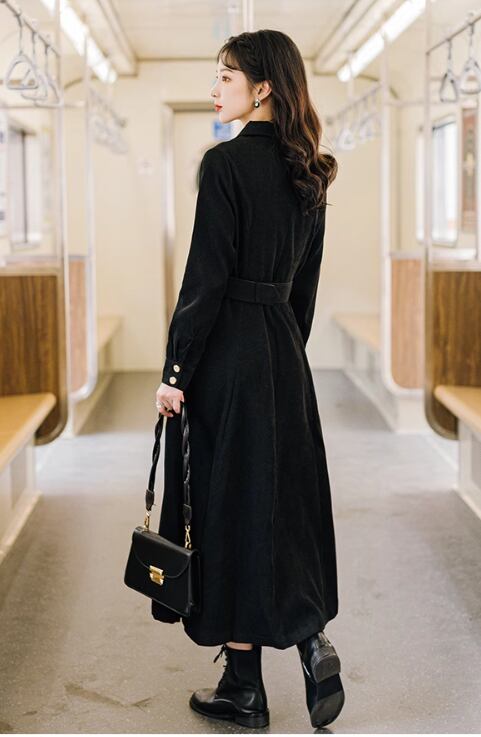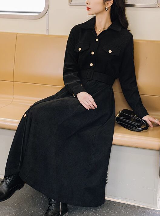 レディース ワンピース シャツワンピ ミモレ ロング マキシ 長袖 襟付き Aライン ベルト ウエストマーク ウエストリボン かわいい 大人可愛い カジュアル 上品 レトロ 個性的 ヴィンテージ ラグジュアリー クラシカル カレッジ風 学生風 ベーシック カントリー ポップ ファンシー メルヘン 秋 冬 デート お出かけ S M L 黒 ブラック 茶色 ブラウン 深緑 緑 グリーン モスグリーン