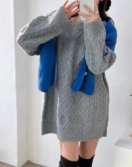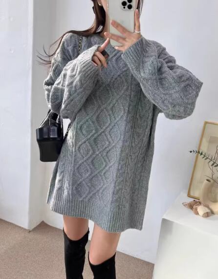 レディース トップス ニット セーター チュニック 長袖 Uネック 針編み かわいい 大人可愛い シンプル おしゃれ ラブリー キュート カレッジ風 学生風 無地 秋 冬 通勤 学生 学校 デート 公園 女子会 休日 韓国 オルチャン コーデ 楽ちん プチプラ 普段使い モテ 清楚 トレンド 定番 S M L XL 2XL ゆったり ゆる 大きめ オーバーサイズ