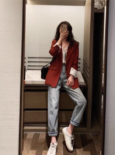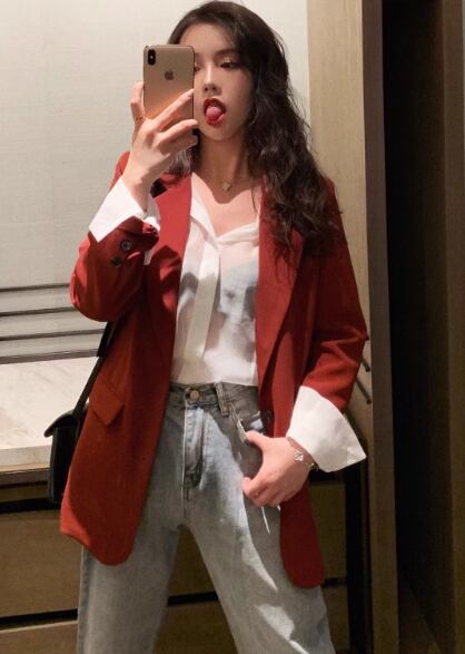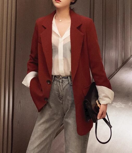 レディース ジャケット 上着 羽織 テーラードジャケット 長袖 襟付き 前開き きれいめ シンプル 上品 おしゃれ かっこいい レトロ アジアン エスニック こなれ感 主役級 フォーマル とろみ感 かっちり 都会的 セレブリティ 爽やか セクシー 高級感 無地 秋 オフィス ビジネス 通勤 デート お出かけ ホテル 韓国 コーデ 清楚 M L XL 2XL 3XL 4XL 5XL レッド