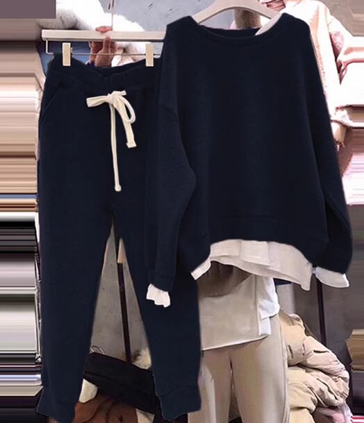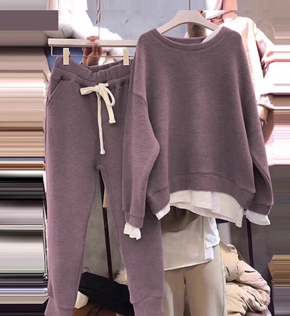 二点セット 上下セット レディース トップス パンツ ボトムス プルオーバー スウェット 部屋着 長袖 ウエストゴム ラフ メンズライク マニッシュ ボーイッシュ 無地 春 秋 10代 20代 30代 体型カバー 定番 動きやすい ブラック 紫 グレー くすみ