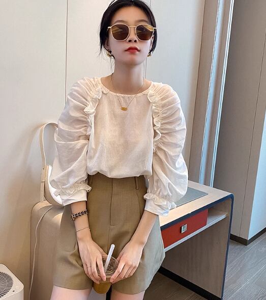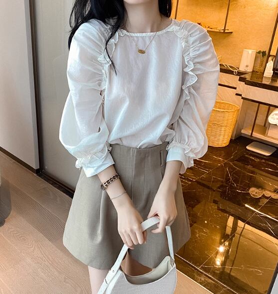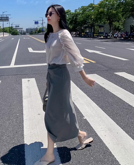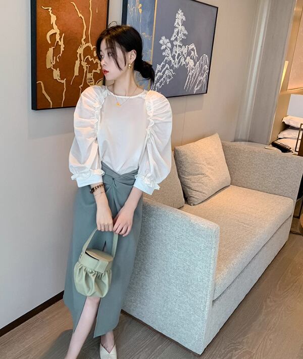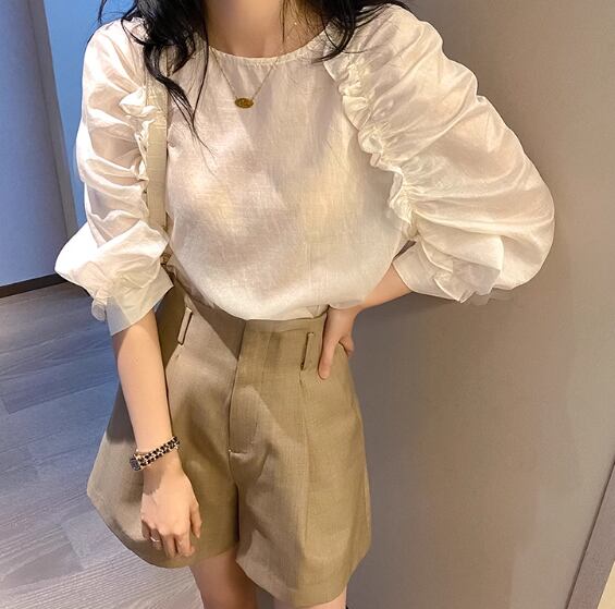 レディース トップス シャツ ブラウス 半袖 5分袖 ボリューム袖 ペプラム 切り替え 透け感 シースルー ギャザー 切り替えデザイン かわいい 大人可愛い きれいめ シンプル カジュアル 上品 おしゃれ ラフ ラブリー キュート 無地 春 夏 10代 20代 デート お出かけ 公園 女子会 休日 韓国 オルチャン コーデ プチプラ 普段使い モテ 清楚 流行 定番 S M L ホワイト