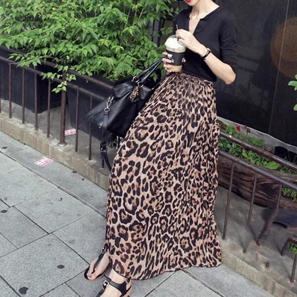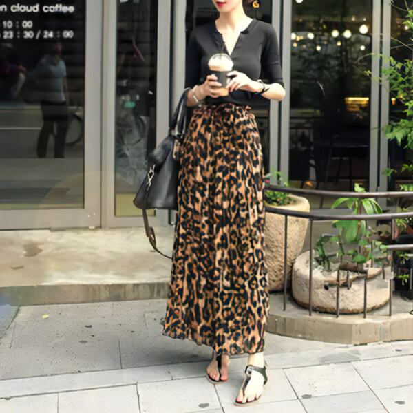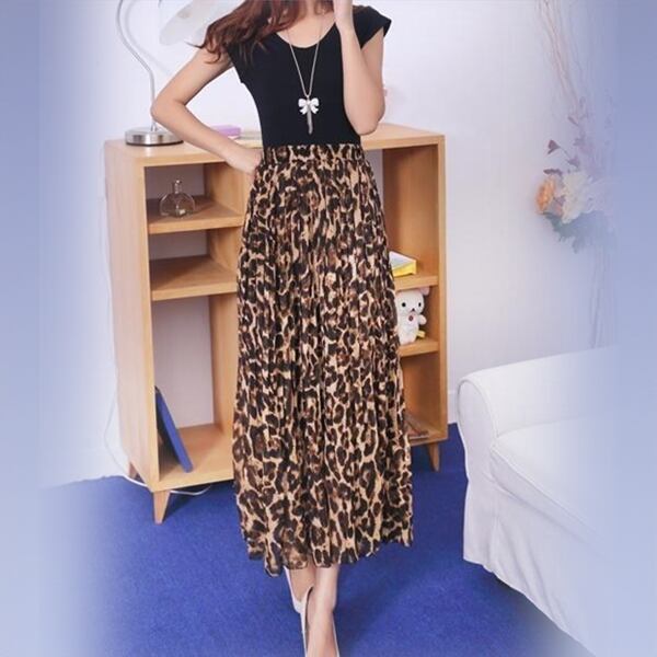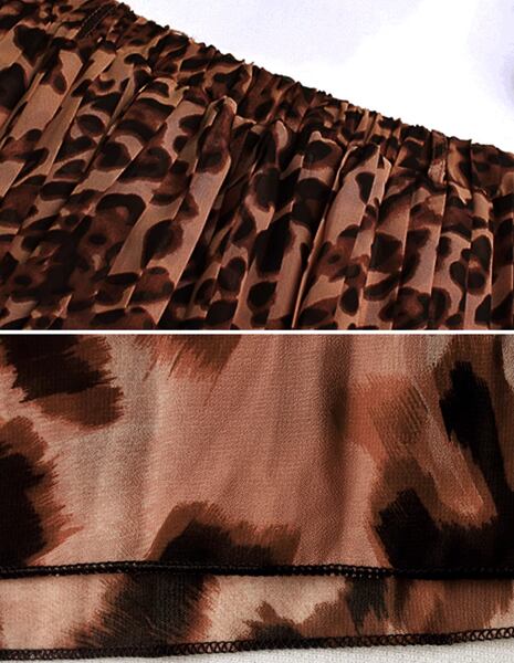 エレガントなAラインシルエットで女性らしさを引き立て、ヒョウ柄プリントがコーディネートのアクセントとして活躍します。日常から特別な場面まで、幅広いシーンで活躍するアイテム。シフォン素材が軽やかで穿き心地も良く動きも自由度がもてます。