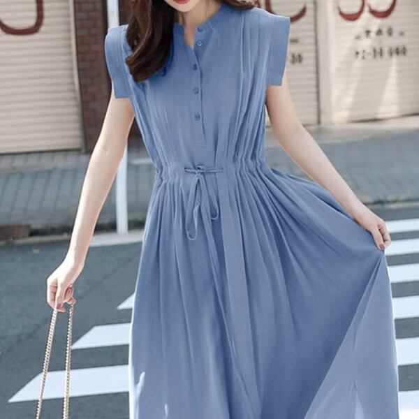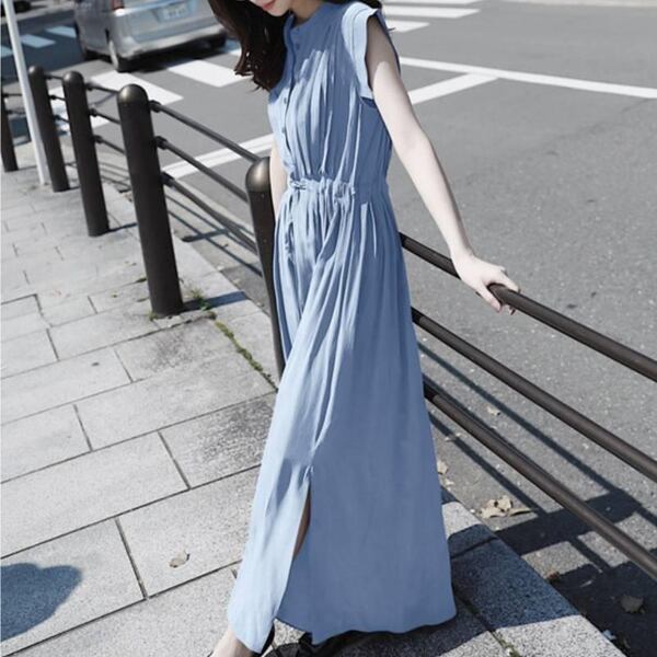 フレンチレトロドレス レディース ワンピース ロング マキシ Aライン プリーツ ノースリーブ ラウンドネック ハイウエスト プルオーバーリボン フロントボタン 襟なし 爽やか カジュアル 大人カジュアル きれいめ 清楚 キュート エレガント 上品 おしゃれ 無地 ママ 20代 30代 40代 デート お出かけ 普段使い 韓国 トレンド 可愛い 大人 大人女子 大人可愛い 休日 オフ 通学 通勤 仕事 20代 30代