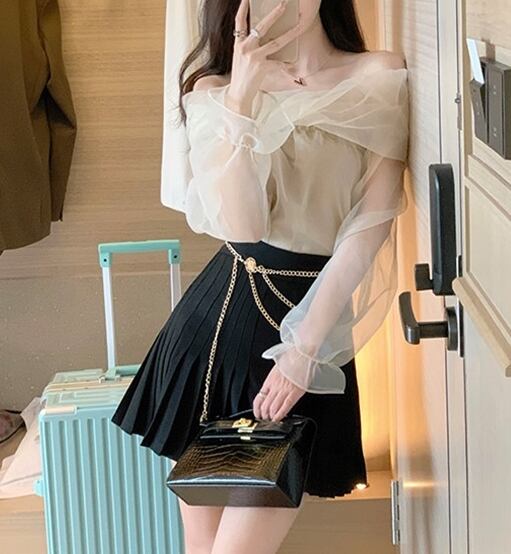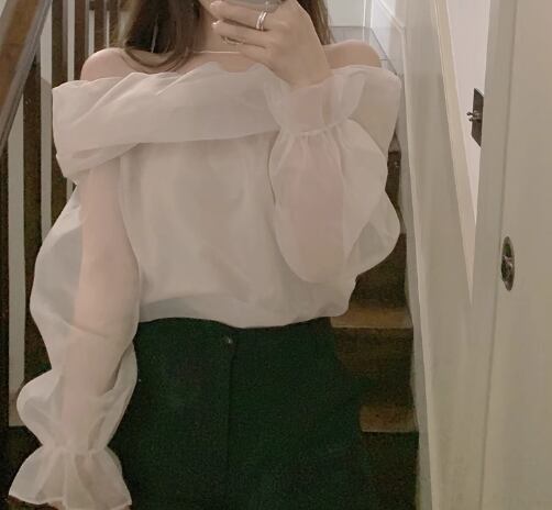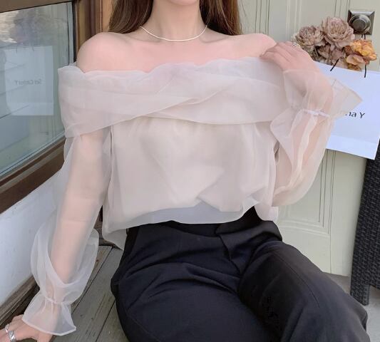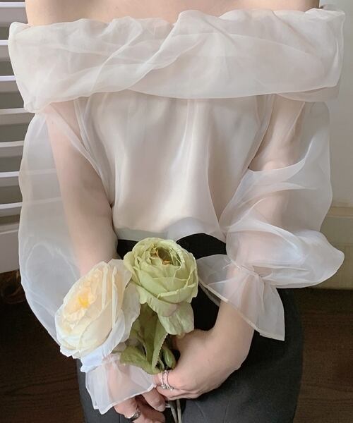 上品な透け感が華やかなオフショルダートップスです。