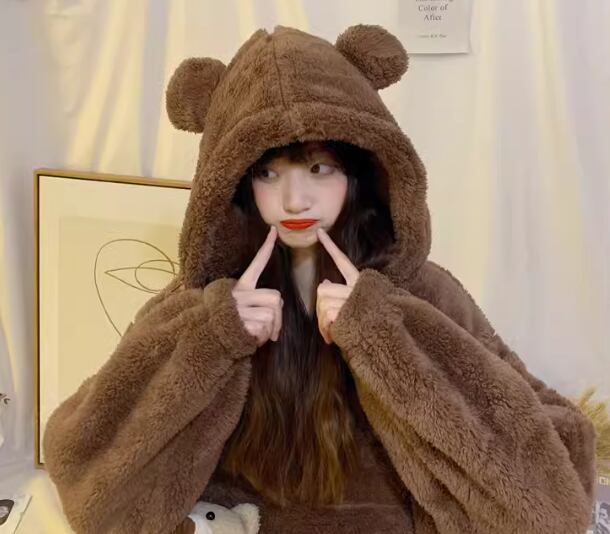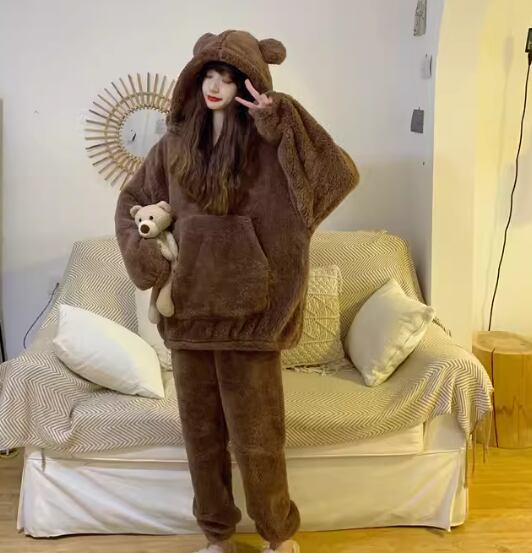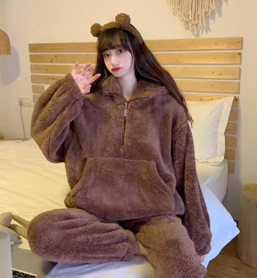 二点セット 上下セット ツーピース くま レディース ルームウェア パジャマ プルオーバー 部屋着 着ぐるみ セットアップ フルレングス 長袖 ポケット ウエストゴム フード 厚手 ベルベット かわいい カジュアル おしゃれ ラフ ルーズ 個性的 主役級 存在感 ラブリー キュート ナチュラル ポップ ファンシー メルヘン リラックス 無地 冬 お泊まり 楽ちん 暖かい 防寒 S M L XL ゆったり ブラウン