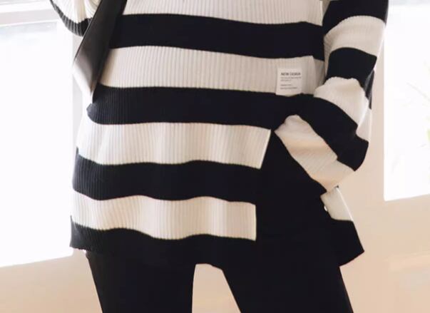 レディース トップス ニット セーター プルオーバー マタニティウェア Tシャツ ミドル丈 長袖 ラウンドネック スリット 大人可愛い シンプル カジュアル おしゃれ レトロ ラフ ボーイッシュ ルーズ 個性的 クール 存在感 ナチュラル シック スタイリッシュ ボーダー 春 ママ マタニティ 妊婦 デート お出かけ 楽ちん 普段使い 着回し トレンド 流行 ゆったり ゆる フリーサイズ 大きめ オーバーサイズ ゆったりウエスト ブラック