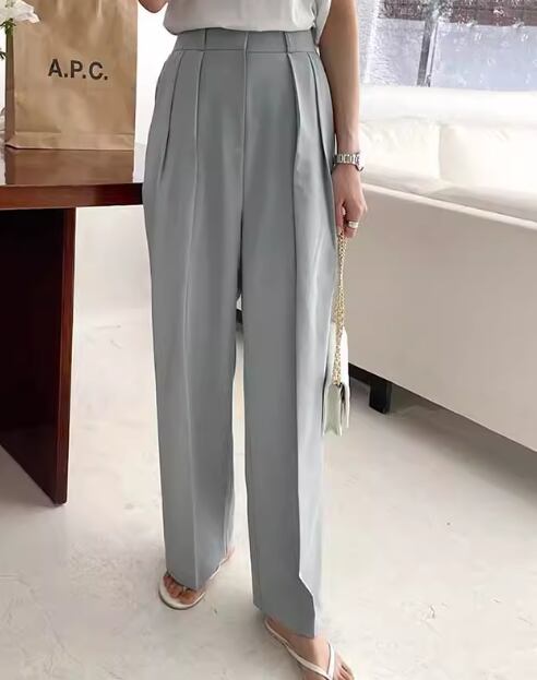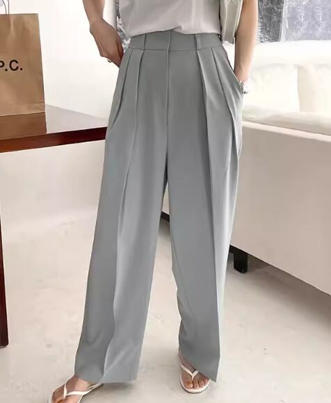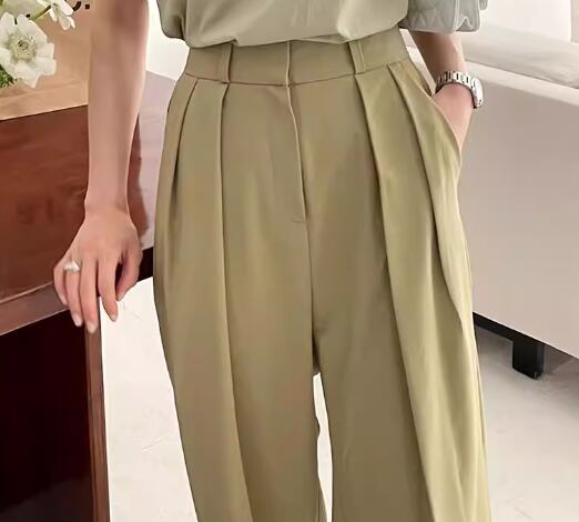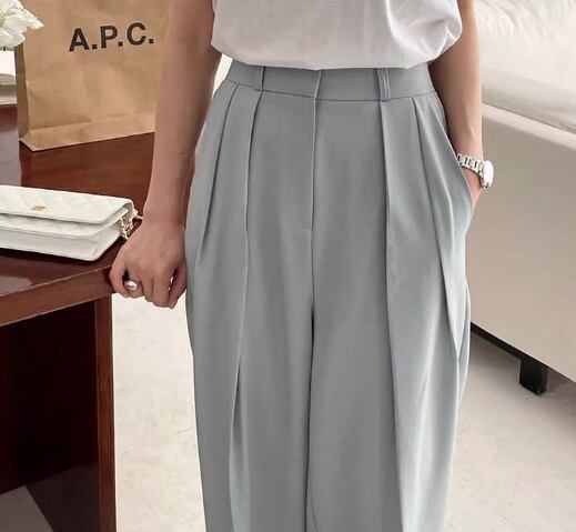 レディース パンツ ボトムス スーツ ワイドパンツ スラックス フルレングス ストレート ハイウエスト センターライン センタープレス 大人可愛い きれいめ シンプル カジュアル 上品 おしゃれ かっこいい レトロ ボーイッシュ ルーズ クール エレガント クラシカル ナチュラル ハンサム シック 高級感 オフィスカジュアル 無地 夏 オフィス ビジネス OL 通勤 デート お出かけ 韓国 体型カバー 脚長 普段使い 着回し トレンド 流行 S M L ゆったり ブルー アプリコット グリーン