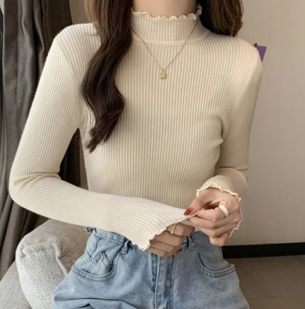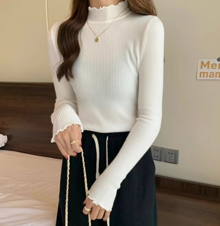 レディース トップス カットソー プルオーバー フリル袖 ハイネック タイト 細身 フェミニン リブ 薄手 ストレッチ 伸縮性 大人可愛い きれいめ シンプル 上品 おしゃれ 主役級 存在感 ロマンティック 無地 秋 冬 授業参観 会議 ミーティング ママ オフィス OL 学生 デート お出かけ リゾート 旅行 女子会 休日 ホテル ショッピング 合コン コンパ カフェ コーデ 普段使い 着回し レイヤード インスタ映え L XL 2XL 3XL 4XL 5XL ホワイト ブラック アプリコット