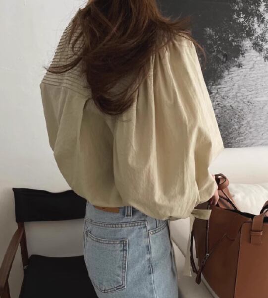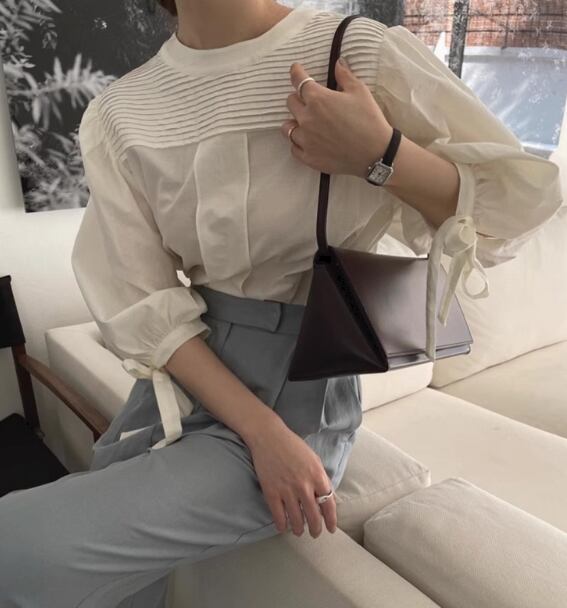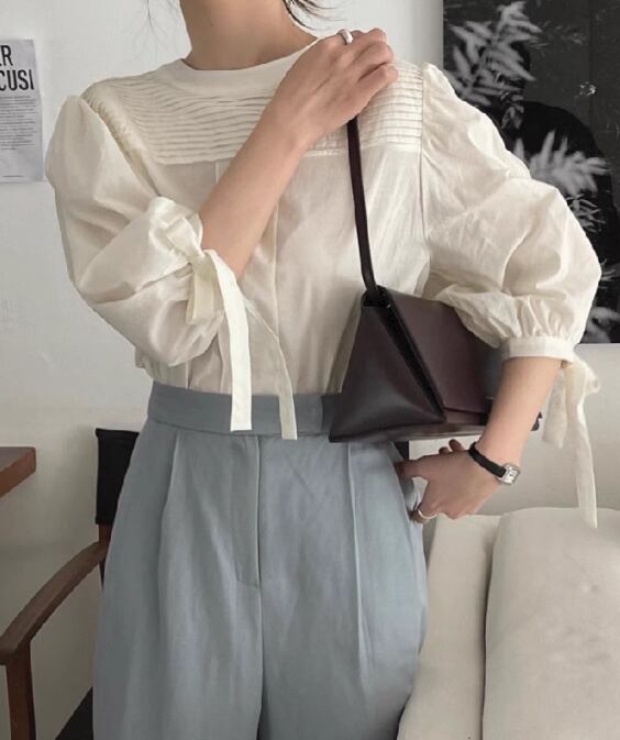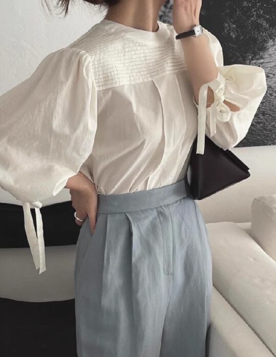 ボリューム袖がかわいいブラウスが登場しました。7分袖の長さが程よく、Uネックデザインで女性らしいシルエットを演出。バルーン袖が華やかさをプラスし、一枚で簡単におしゃれ感を演出します。シンプルながらも存在感のあるデザインは、オフィスやデート、女子会など様々なシーンで活躍すること間違いなしです。