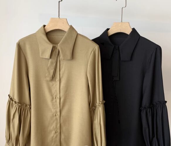 レディース トップス シャツ ブラウス 長袖 ボリューム袖 襟付き ボウタイ かわいい 大人可愛い きれいめ シンプル カジュアル おしゃれ ラブリー キュート 知的 清潔感 無地 秋 オフィス ビジネス OL 通勤 学生 学校 通学 デート お出かけ 公園 休日 韓国 オルチャン コーデ 着回し モテ 清楚 トレンド インスタ映え 定番 S M L 黒 ブラック ブラウン