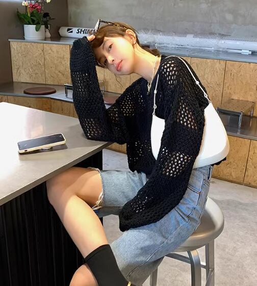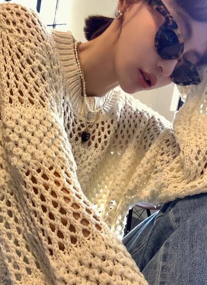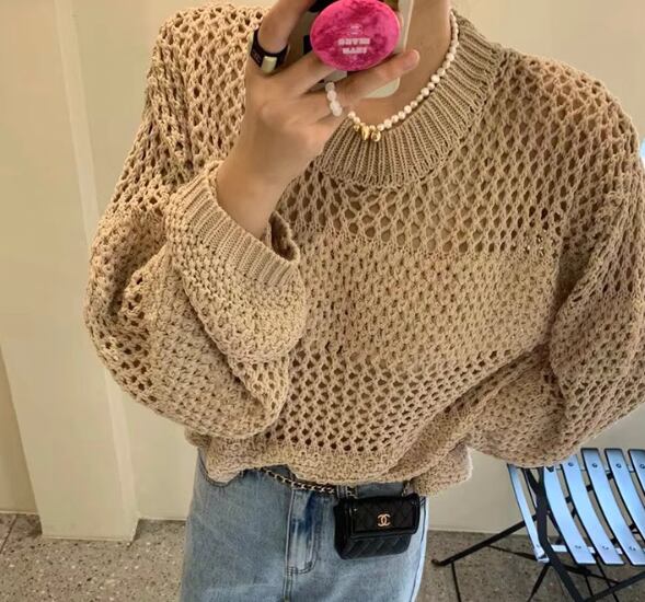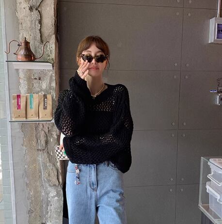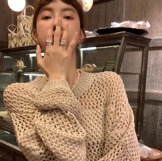 レディース ニット プルオーバー 長袖 ボリューム袖 Uネック 針編み メッシュ かわいい 大人可愛い きれいめ シンプル カジュアル おしゃれ かっこいい アジアン こなれ感 ラフ ガーリー クール モード系 無地 春 学生 学校 デート お出かけ 公園 女子会 休日 韓国 オルチャン コーデ 普段使い 着回し モテ 清楚 トレンド S M L ホワイト 黒 ブラック ベージュ
